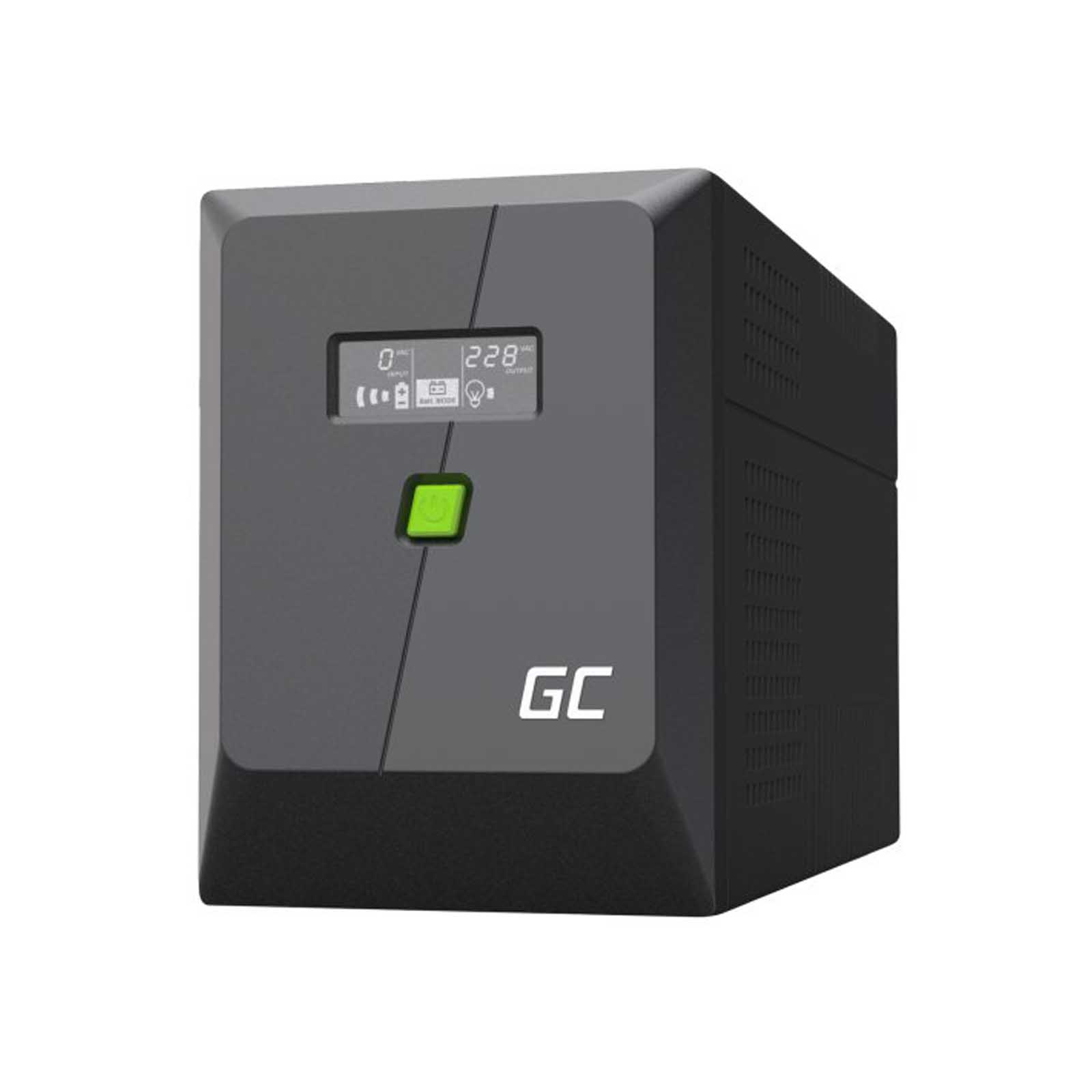 UPS o mocy 1000VA/600W z wyświetlaczem LCD, wyposażony w 2x gniazda Schuko i 2x gniazda IEC C13 |