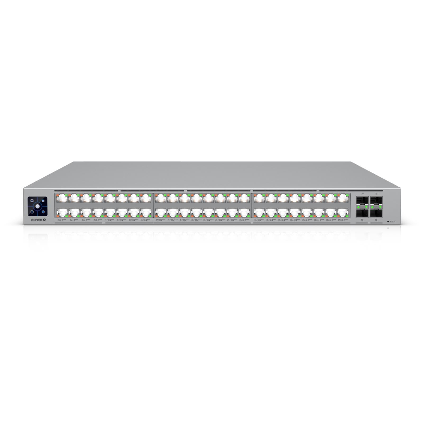 48-portowy zarządzalny, gigabitowy switch PoE+++ Layer 3 Etherlighting klasy korporacyjnej, z 32x portami 10G Gigabit Ethernet PoE+++, 16x portami 2.5G Gigabit Ethernet PoE+++ i 4x slotami 25G SFP28 |