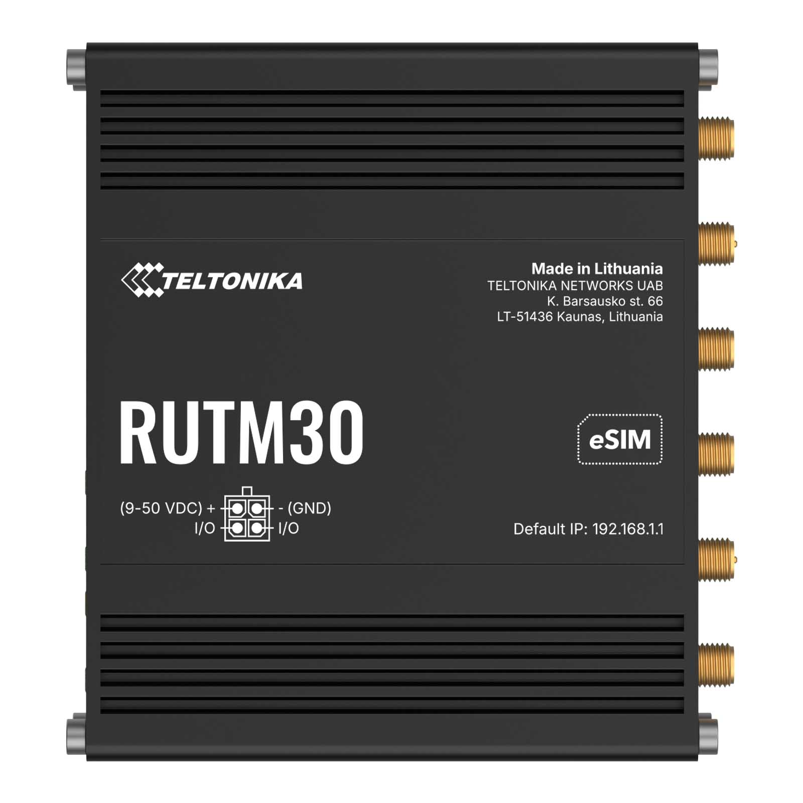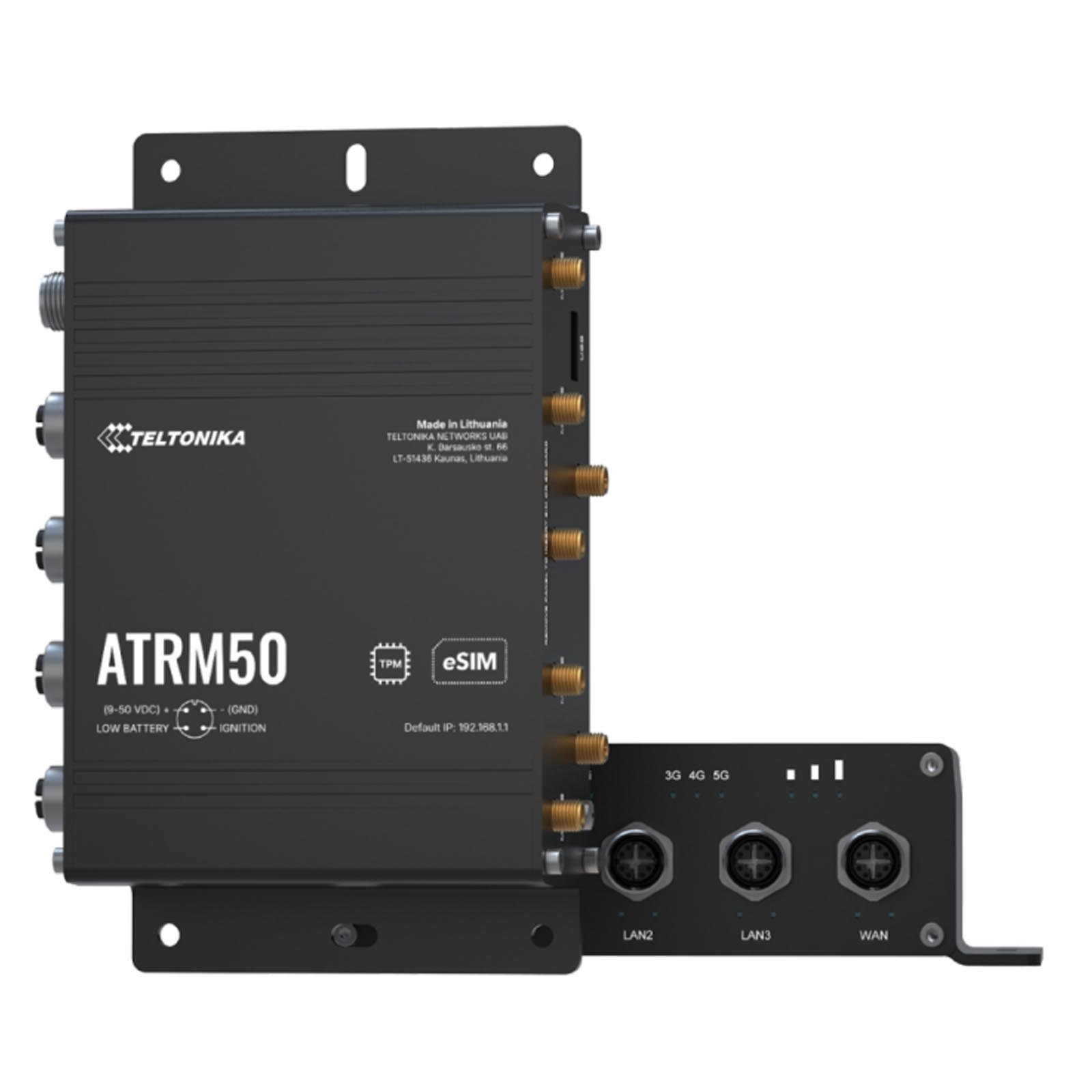 Przemysłowy router 5G ze złączami M12 przeznaczony do transportu, wyposażony w 4x porty Gigabit Ethernet M12, WiFi, Dual-SIM z eSIM, GPS, wydajny procesor i oprogramowanie RutOS do zaawansowanych rozwiązań sieciowych |
