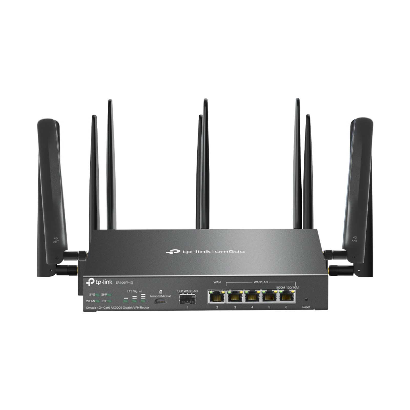 Gigabitowy router VPN Omada, 4G+ kat. 6, z WiFi AX3000, Multi-WAN z możliwością centralnego zarządzania i z równoważeniem obciążenia pasma |