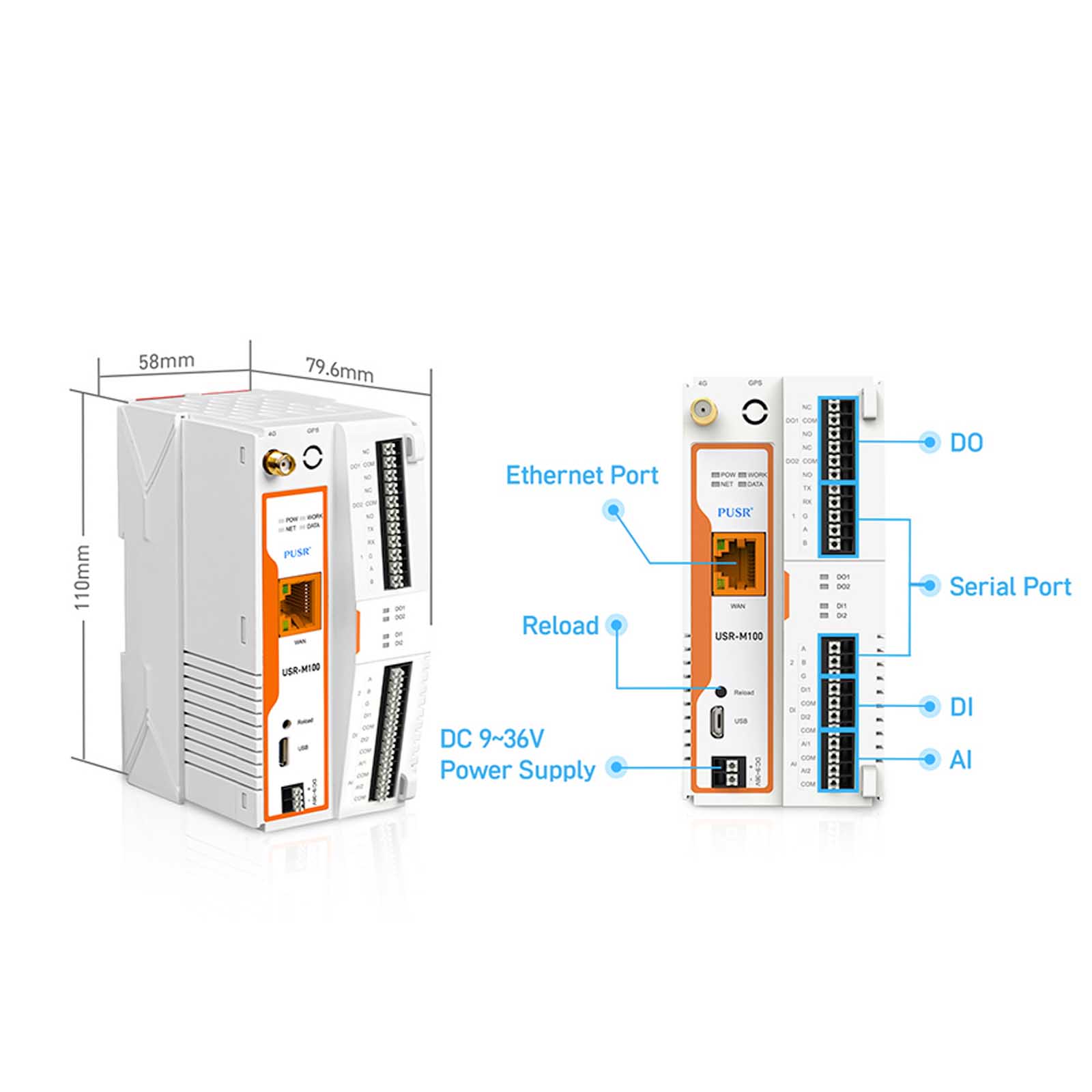USR-M100 jest przeznaczony do zastosowań edge computing w IoT, inteligentnej produkcji, automatyce przemysłowej itp. Zapewnia bogate protokoły sieciowe, takie jak TCP, UDP, HTTP, MQTT, SSL itp. USR-M100 integruje wszechstronne interfejsy, takie jak: RS232, RS485, port Ethernet, antena komórkowa, DI, DO, AI itp. Obsługuje również Modbus RTU do TCP / JSON. Produkt oferuje funkcje przetwarzania brzegowego w celu zmniejszenia zasobów obliczeniowych w chmurze i optymalizacji danych w aplikacji IoT.