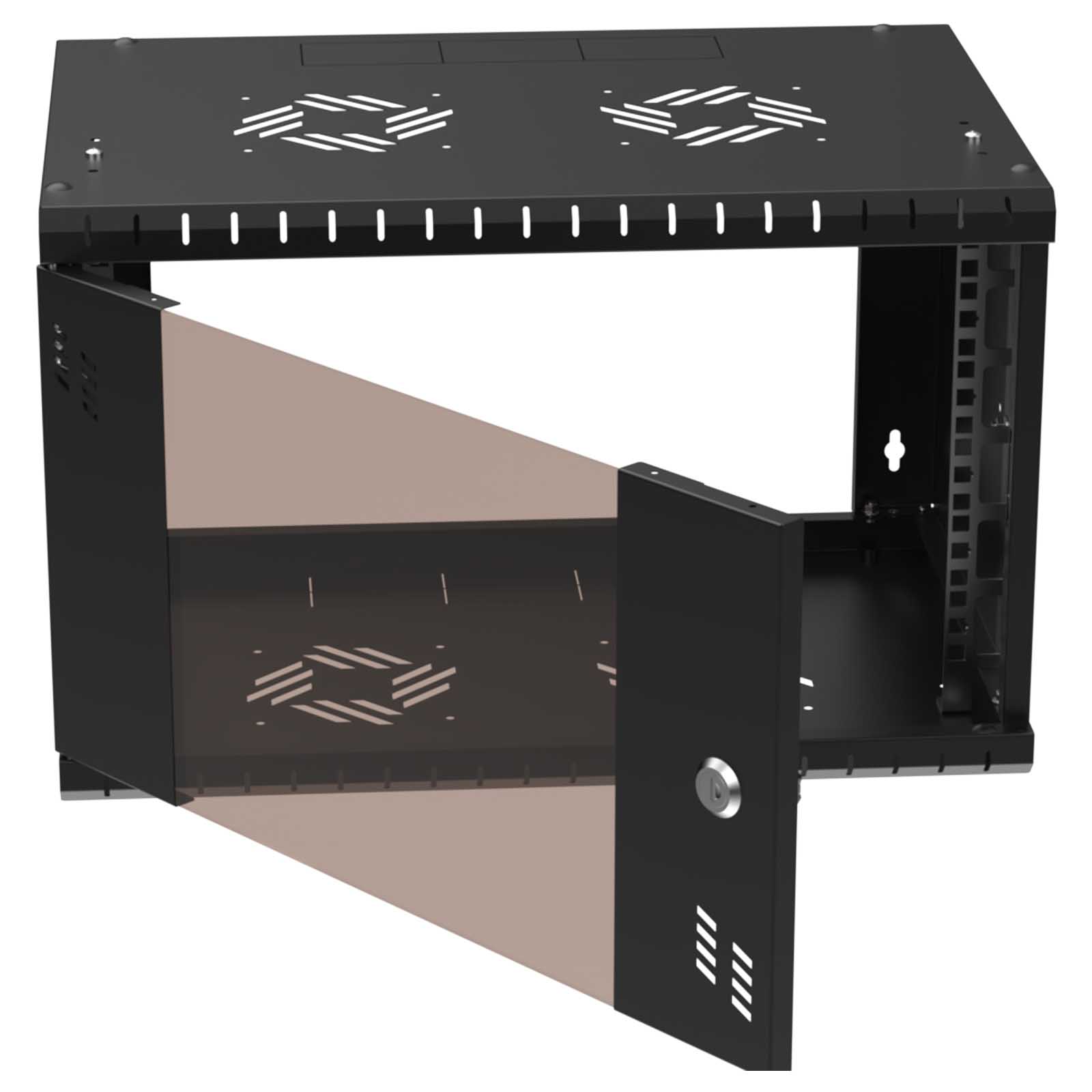 StalFlex S-RC19-6U-350GB Szafa wisząca Standard 19" 6U, 350mm, drzwi szklane, czarna. Szafa RACK serii Standard to idealne rozwiązanie podczas renowacji lub wymiany infrastruktury, a także dla każdego kto samodzielnie chce podjąć się stworzenia własnej serwerowni. Szafa Standard jest dostępna w różnych wariantach: 10 i 19 cali, o wysokości 4U, 6U, 9U, 12U, z głębokością 300mm, 350mm lub 400mm, w kolorach czarnym i szarym. Najważniejsze cechy: