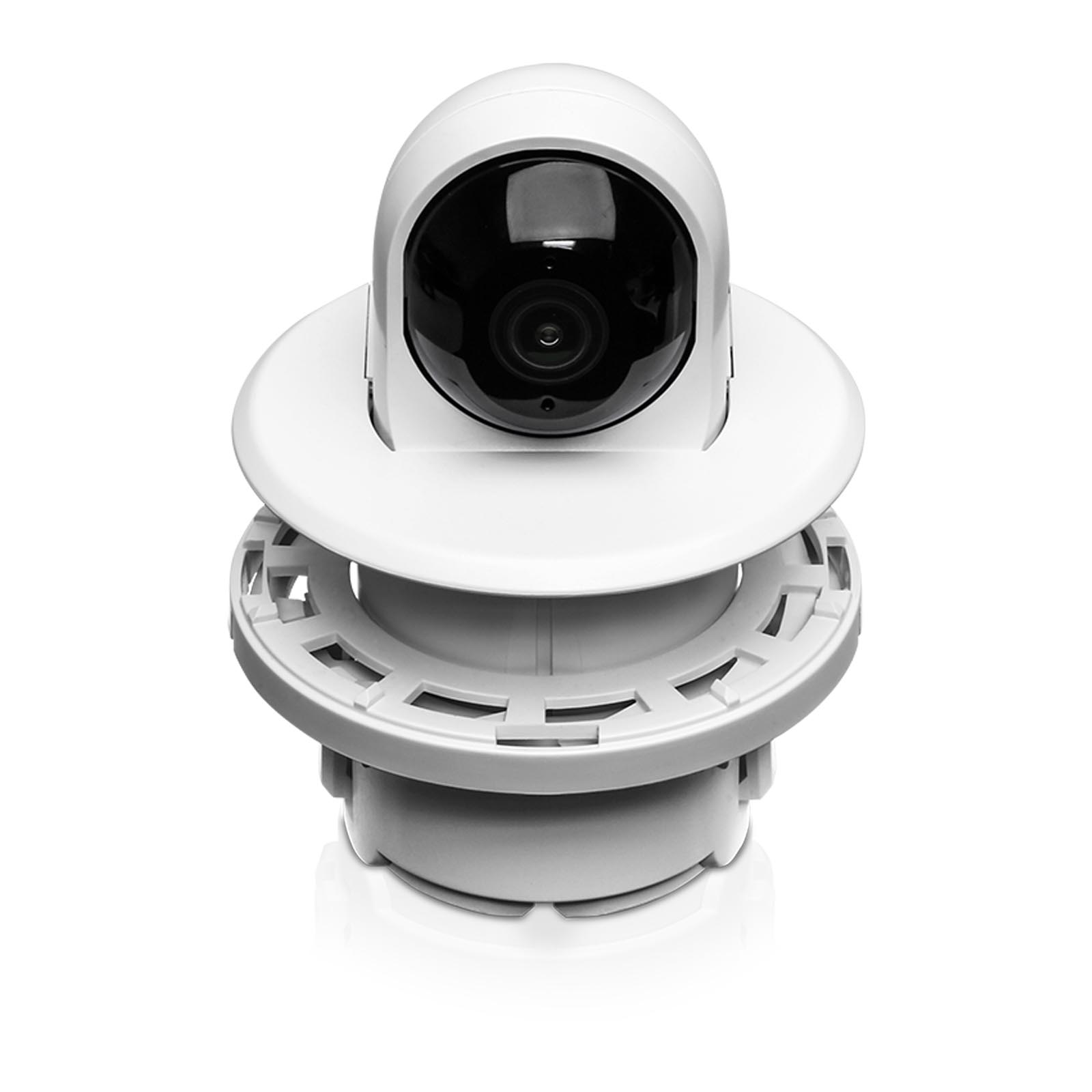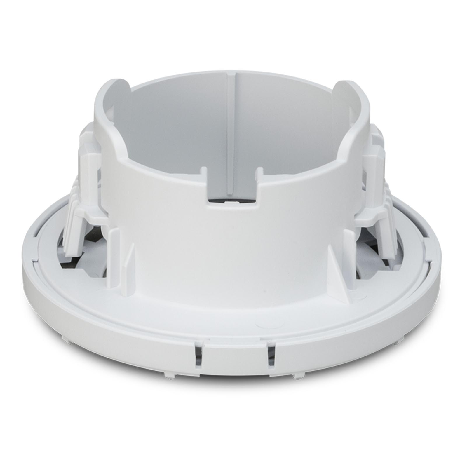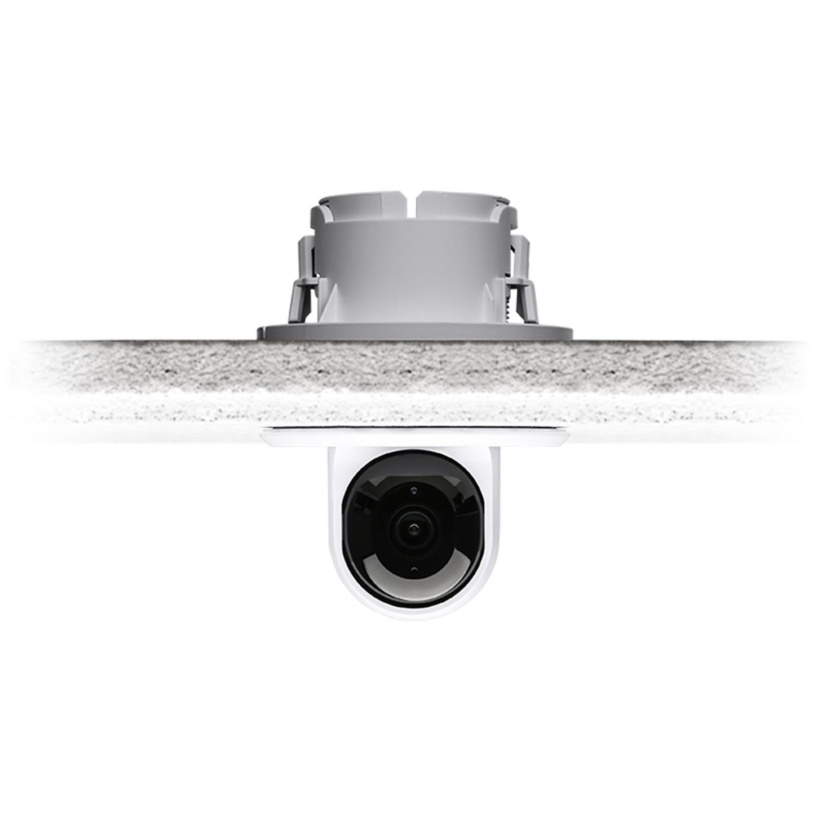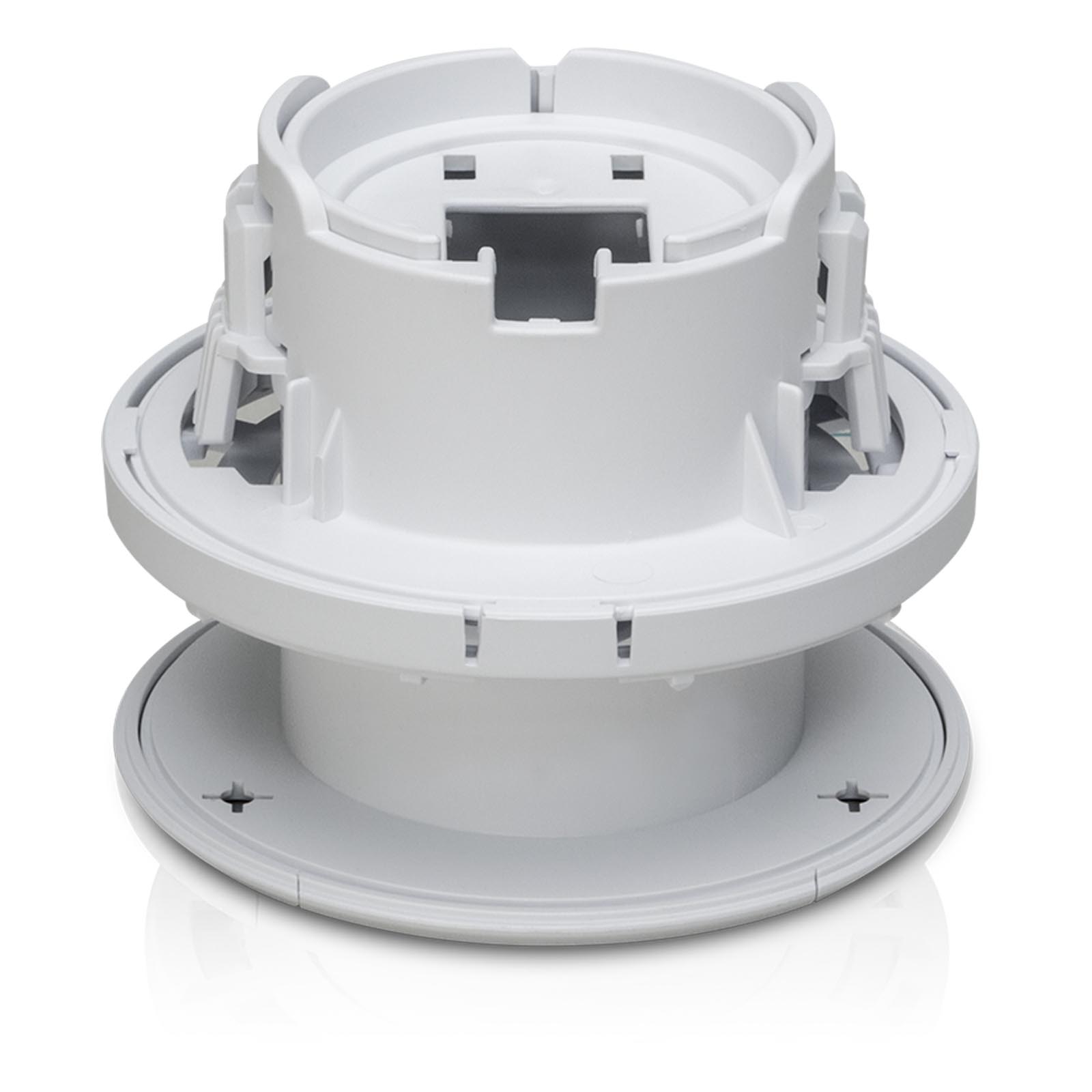 Ubiquiti Flex Camera Ceiling Mount, 3-pack (UVC-G3-F-C-3) to zestaw trzech wpuszczanych uchwytów sufitowych do kamery UniFi Protect G3 Flex (UVC-G3-FLEX) i kamery UniFi Protect G5 Flex (UVC-G3-FLEX). Kamerę można zamontować wewnątrz sufitu lub na płycie sufitowej, uzyskując czysty, niskoprofilowy montaż. W zestawie znajdują się elementy montażowe do płyt kartonowo-gipsowych, powierzchni litych lub płyt sufitowych. Opcjonalna śruba zabezpieczająca blokuje kamerę w uchwycie od góry, zapewniając dodatkowe bezpieczeństwo. Najważniejsze cechy:
