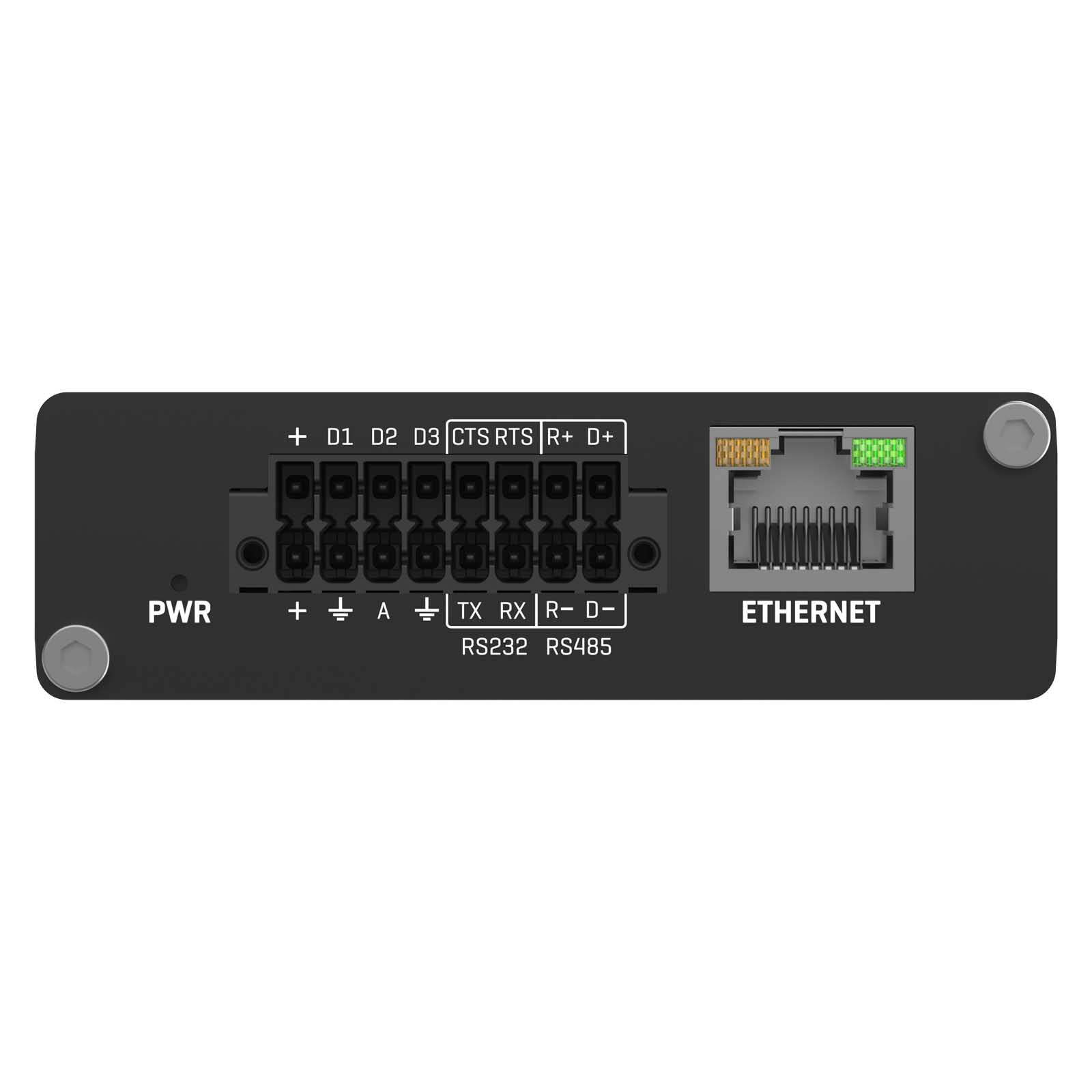 - RS232: Terminal block connector: TX, RX, RTS, CTS