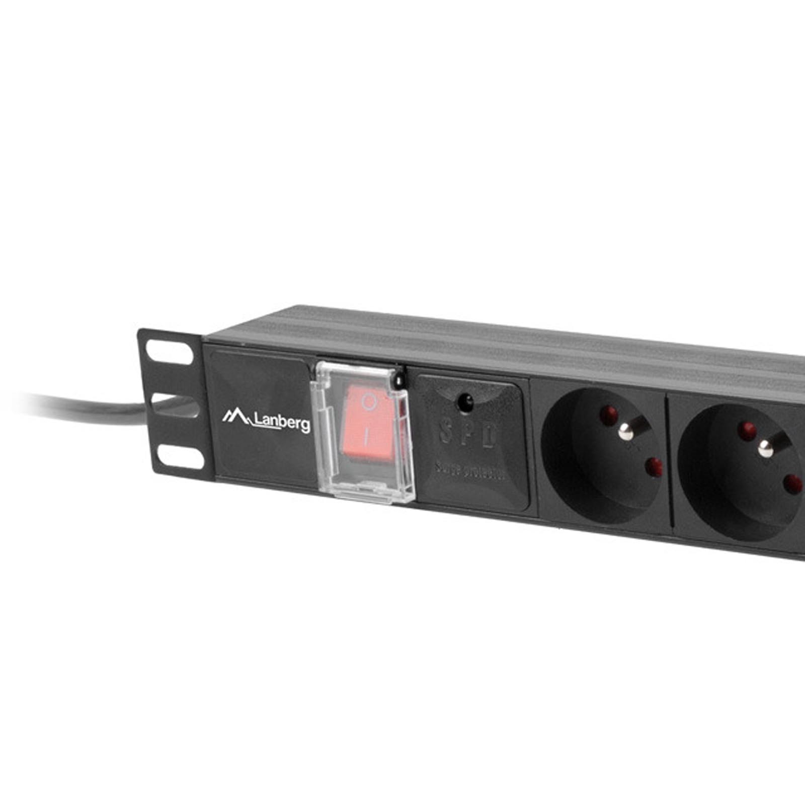 Lanberg PDU-07E-0200-BK, Listwa zasilająca 19", 7 gniazd, 2m z wyłącznikiem to listwa dystrybucji zasilania (PDU) z 7 gniazdami standardowymi i kablem o długości 2m, przeznaczona do poziomego montażu doczołowego w szafie rack 19". Wysokość listwy wynosi 1U. Listwa jest wyposażona we wtyk UNI-schuko (DIN 49441), 16A. Listwa dystrybucji zasilania (PDU) Lanberg PDU-07E-0200-BK, to rozwiązanie dedykowane do zastosowań profesjonalnych w zakresie listew zasilających. Listwa dostarcza płynne, niezawodne zasilanie do podpiętych do niej urządzeń zapewniając dodatkowy poziom ochrony. Jest ona wyposażona w 1 fazowe wejście zasilania oraz szereg zabezpieczeń, takich jak zastosowanie ochrony przeciwprzeciążeniowej, przesłony torów prądowych, mających na celu ochronę użytkownika oraz wprowadzono bezpiecznik automatyczny, co ułatwia ewentualne serwisowanie oraz jego wymianę.