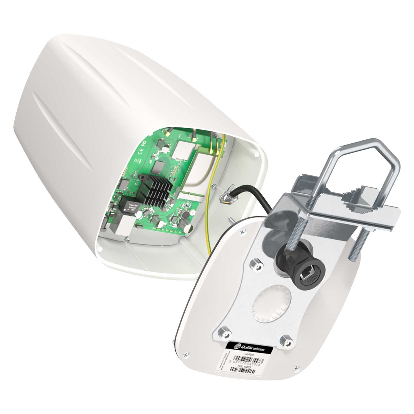 QuSpot AMT912WS dla MikroTik RB912/RB922 to dookólna antena zewnętrzna zaprojektowana w celu zapewnienia niezawodnej łączności bezprzewodowej w różnych środowiskach. QuSpot jest rozwiązaniem typu "wszystko w jednym", które integruje wielokierunkowe anteny Wi-Fi MIMO 4x4 o wysokim zysku z płytą MikroTik z serii RB912 lub RB922 w jednej obudowie IP67. Taka integracja pozwala na wdrożenie nowych rozwiązań zewnętrznych.