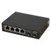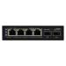 6x portów (4 x PoE + 2 x UP LINK) 4x porty PoE 10/100/1000 Mb/s (RJ45) 2x sloty SFP1000 Mb/s (SFP)