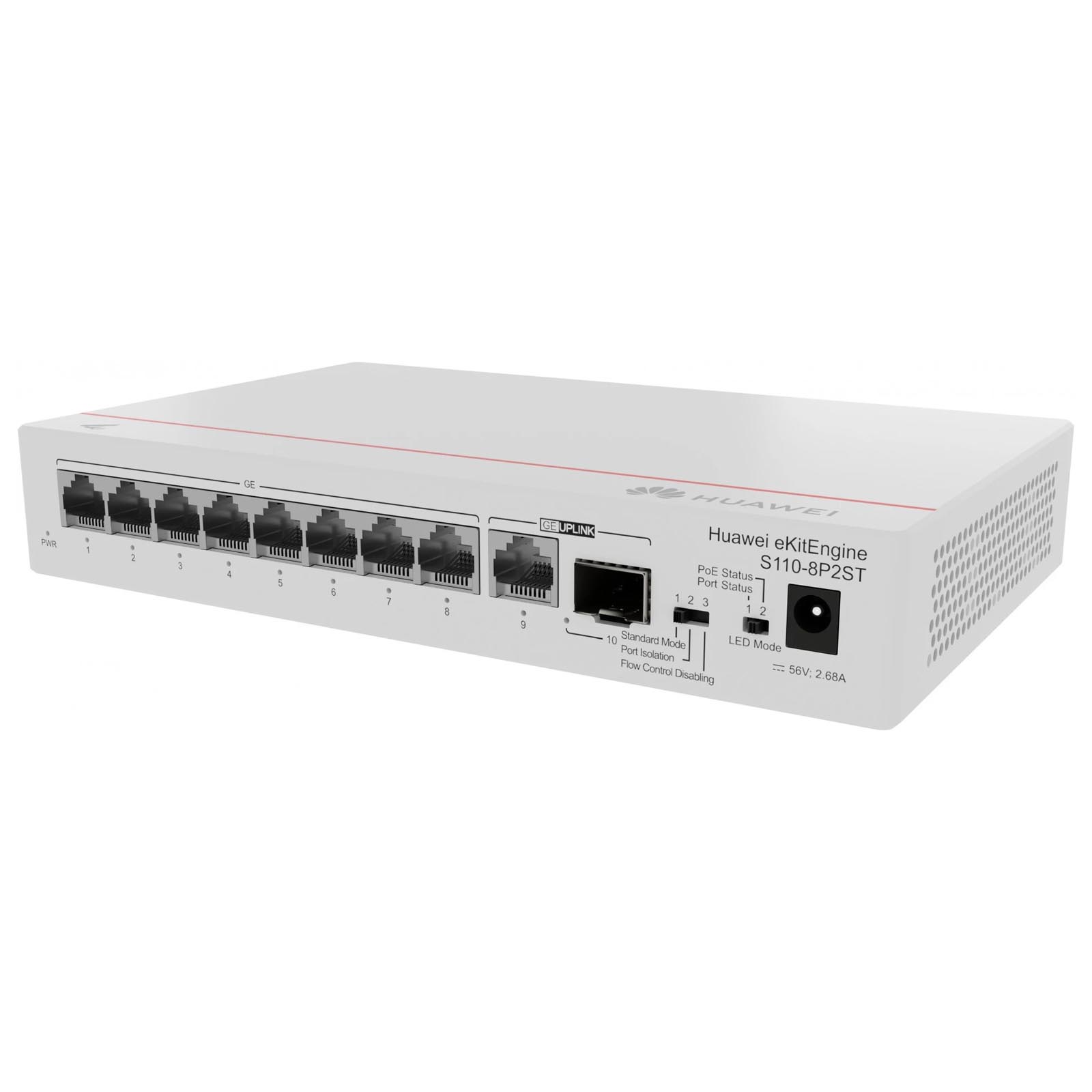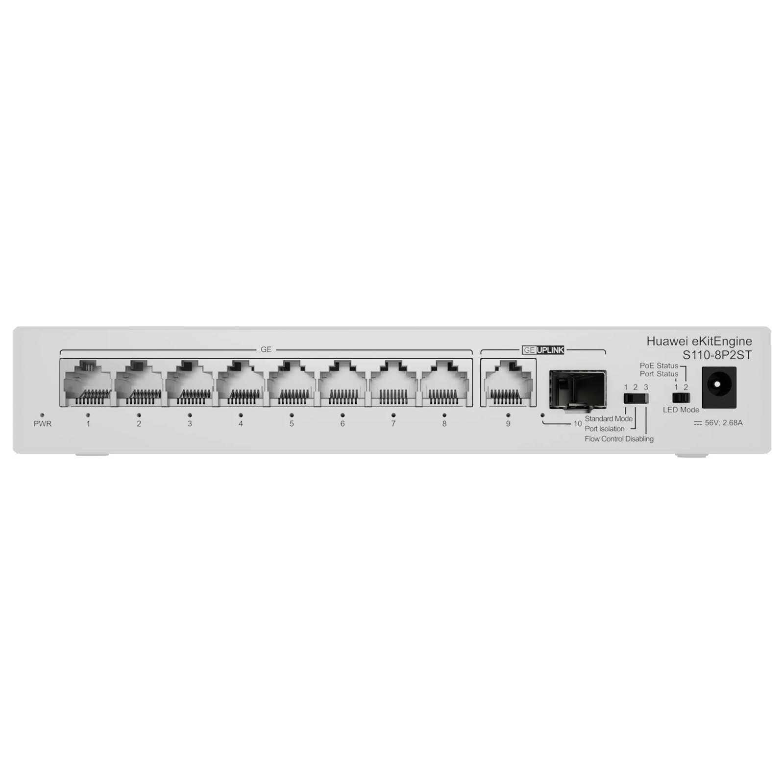 Huawei eKitEngine S110-8P2ST (98012269) to niezarządzalny przełącznik wyposażony w 8x portów Gigabit Ethernet PoE+, 1x slot SFP oraz 1x port Gigabit Ethernet, o budżecie mocy PoE 124 W. Kompaktowy przełącznik Huawei S110-8P2ST to znakomity sprzęt sieciowy, który uosabia esencję wydajności i wszechstronności. Dzięki 8 portom Gigabit Ethernet z obsługą PoE+ i dodatkowemu slotowi SFP do przesyłania danych, przełącznik został starannie wykonany, aby obsługiwać różnorodną gamę urządzeń, zapewniając jednocześnie solidną sieć szkieletową dla małych i średnich środowisk biznesowych.