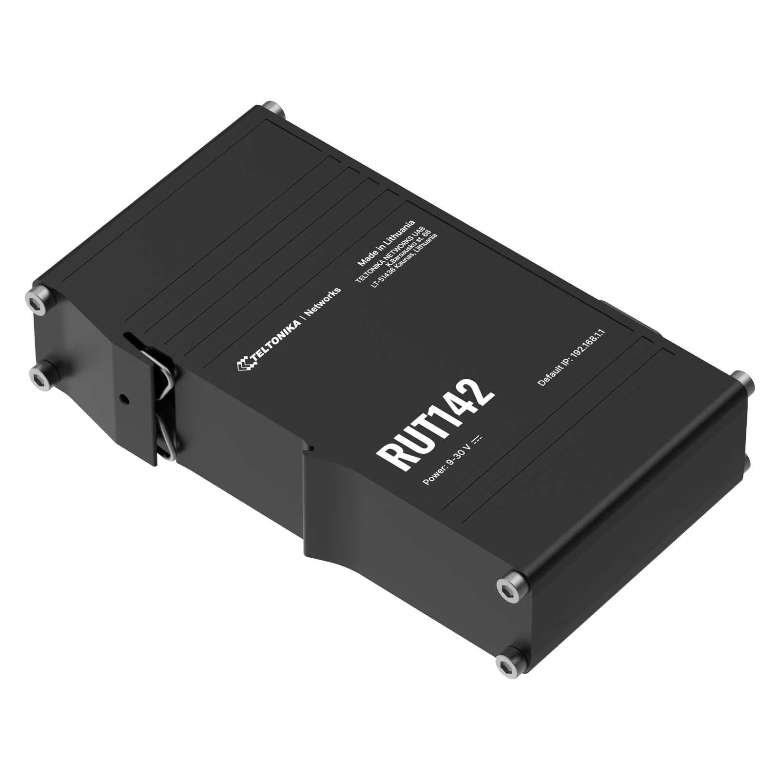 Teltonika RUT142 router (RUT14200B000) to kompaktowy przemysłowy router z 2x portami Fast Ethernet i portem szeregowym RS232, przeznaczony do wymagających zadań sieciowych w przemyśle, a także do bardziej ogólnych zastosowań sieciowych.