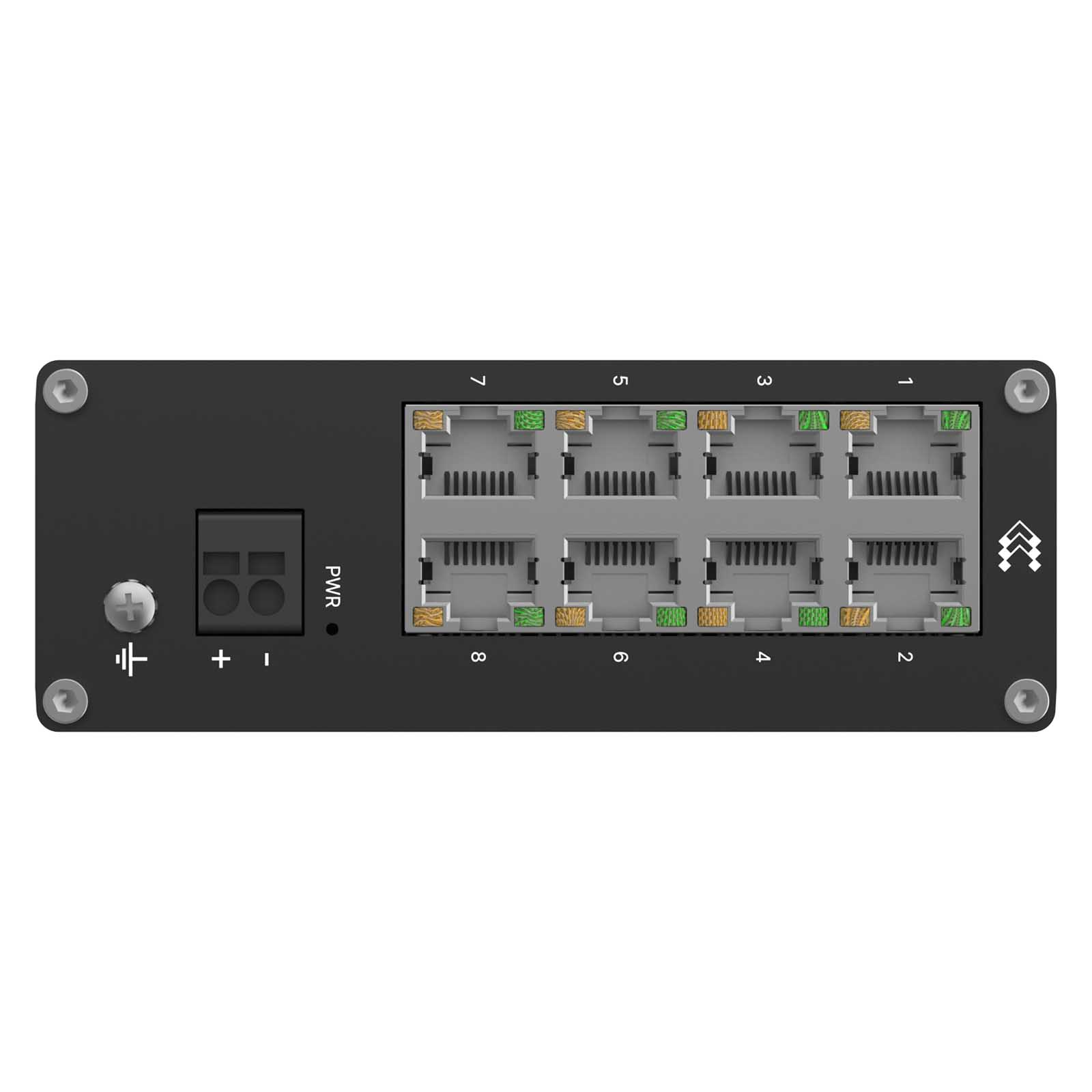 Przełącznik wyposażony jest w 8x portów Ethernet 10/100, co zapewnia stabilną i niezawodną łączność, wystarczającą do większości zastosowań przemysłowych, w których nie jest wymagana wysoka przepustowość. Szeroki zakres obsługiwanych napięć zasilania (7-57 V) oraz solidna konstrukcja sprawiają, że switch nadaje się do profesjonalnych rozwiązań.