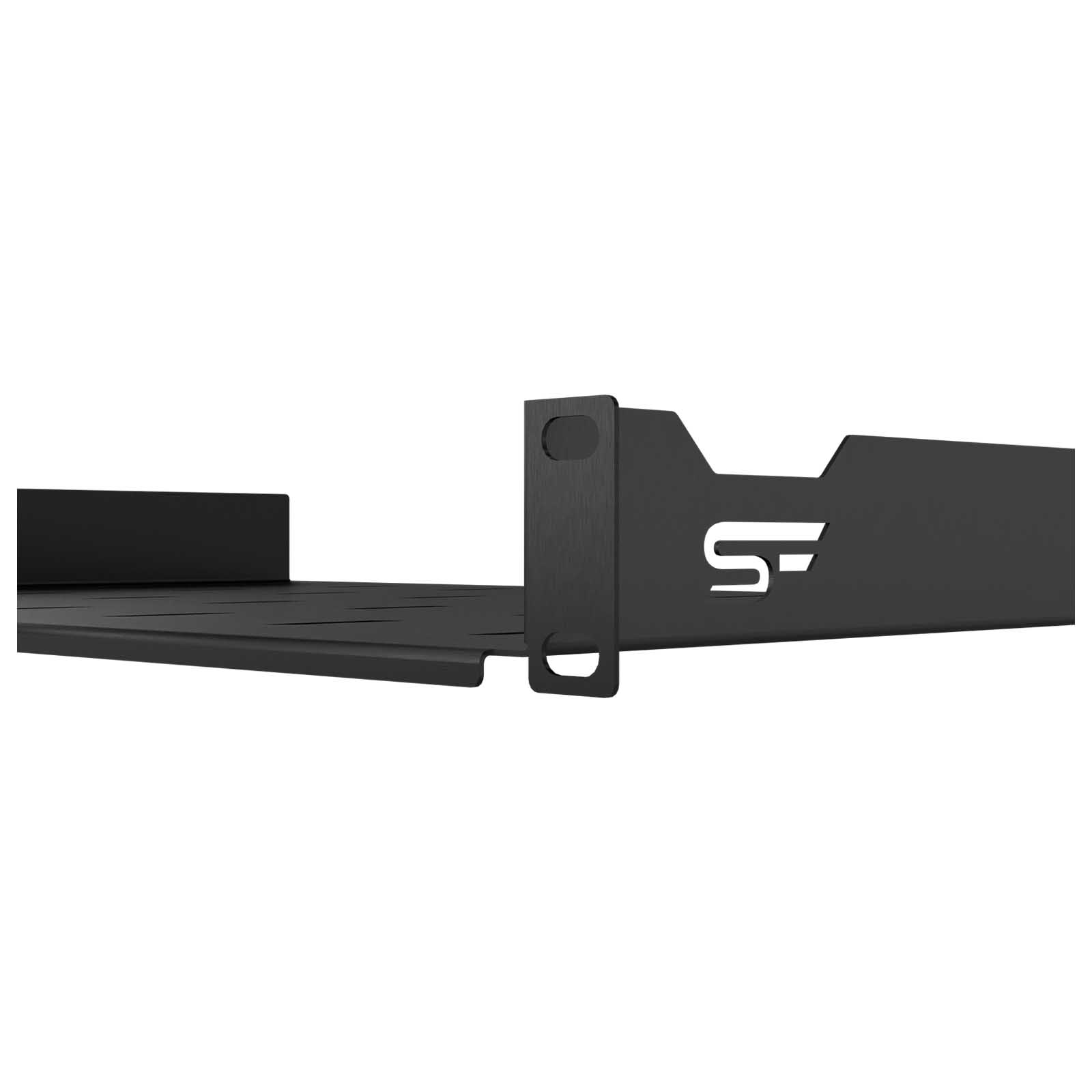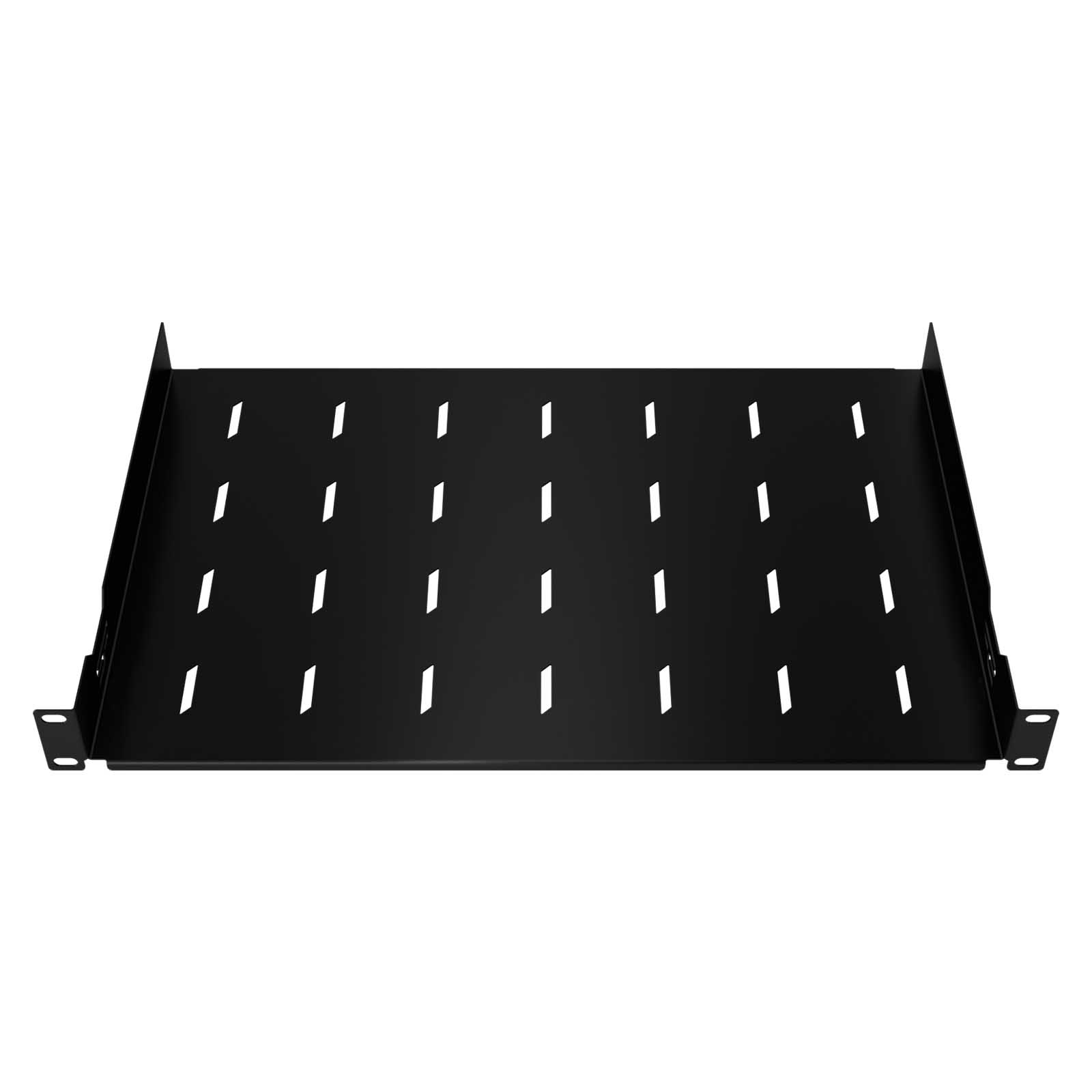 Mocowanie do przednich wsporników rackowych zapewnia stabilność konstrukcji i umożliwia przenoszenie większych obciążeń. Wysokiej jakości stal z jakiej wykonano półkę zapewnia wytrzymałość i stabilność jej konstrukcji. Perforowane dno zapewnia lepsze odprowadzanie ciepła od postawionych urządzeń, a także może służyć do dodatkowego zabezpieczenia urządzeń za pomocą opasek kablowych.