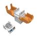 Solarix SXKJ-6-UTP-WH-SA to samozaciskowy keystone kat. 6 UTP RJ45. Samozaciskowy keystone charakteryzuje się łatwą instalacją bez używania narzędzi zaciskowych. Posiada parametry zgodne z międzynarodowymi standardami dotyczącymi okablowania strukturalnego ANSI/TIA 568, ISO/IEC 11801 a EN 50173 dla kategorii 6 i klasy przewodów Class E, włącznie z wszystkimi najnowszymi dodatkami. Keystone daje możliwość zmiany kąta wprowadzenia kabla w zakresie 180° i posiada kolorowe oznaczenia zgodnie ze standardami T568A lub T568B. Budowa keystona umożliwia podłączenie kabli typ drut o średnicy AWG 22-26. Wersja nieekranowana jest w kolorze czarnym, natomiast ekranowana posiada srebrną obudowę metalową. Kompaktowe wymiary zapewniają kompatybilność z modularnymi gniazdkami większości producentów (np. ABB, Schneider, Legrand, Moeller, Hager, Obzor itd). Najważniejsze cechy: