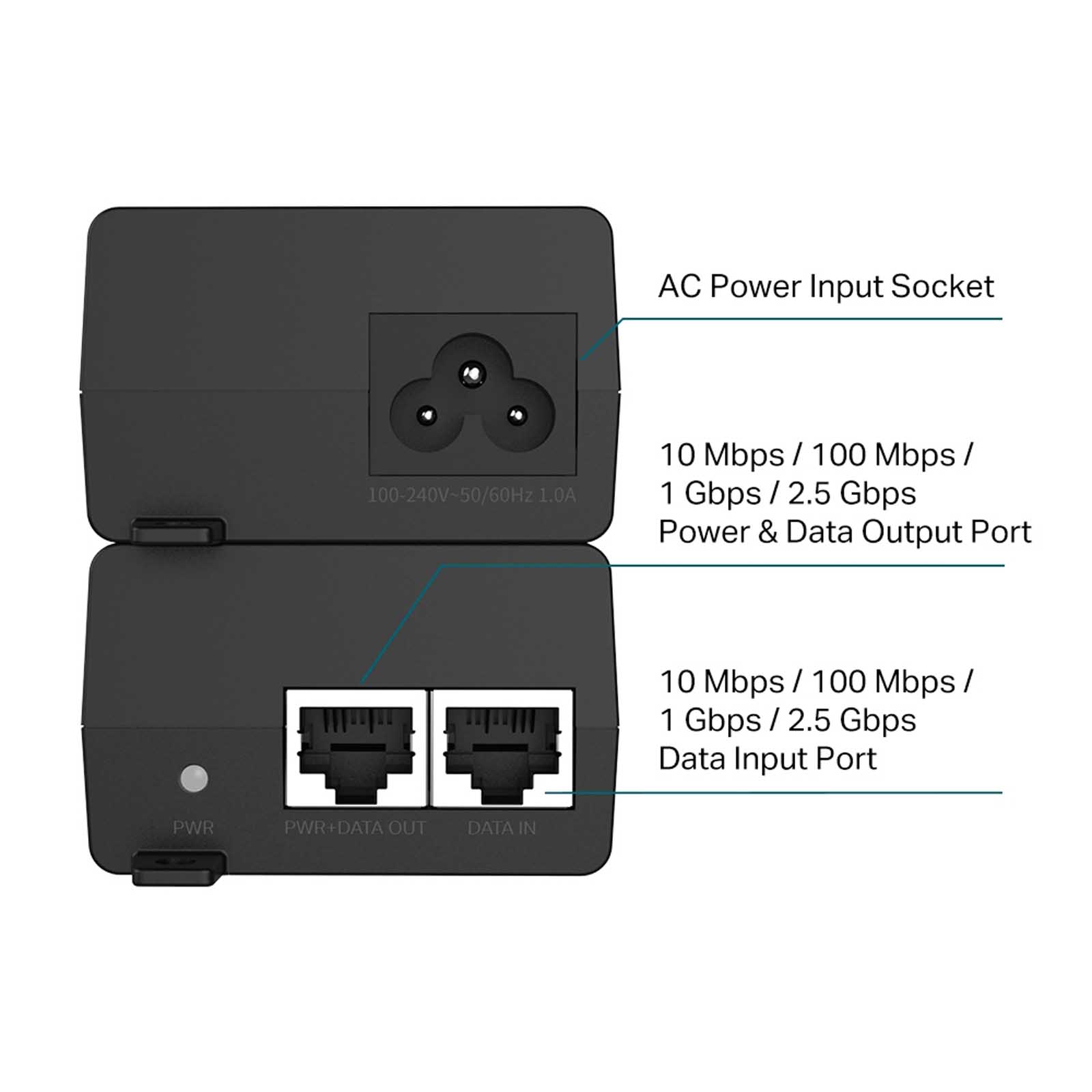 TP-Link POE260S (TL-POE260S) to Injector PoE+ 2,5G, zgodny ze standardami IEEE802.3af/at, do 30W. Injector PoE+ 2,5G POE260S (TL-POE260S) jest zgodny ze standardami IEEE 802.3af/at i ma możliwość dostarczenia 30W zasilania poprzez PoE. Z łatwością może rozszerzyć Twoją sieć do miejsc gdzie nie ma doprowadzego zasilania, a w których chciałbyś/chciałabyś zamontować kamery IP HD, punkty dostępowe 2,5G, telefony IP itp.