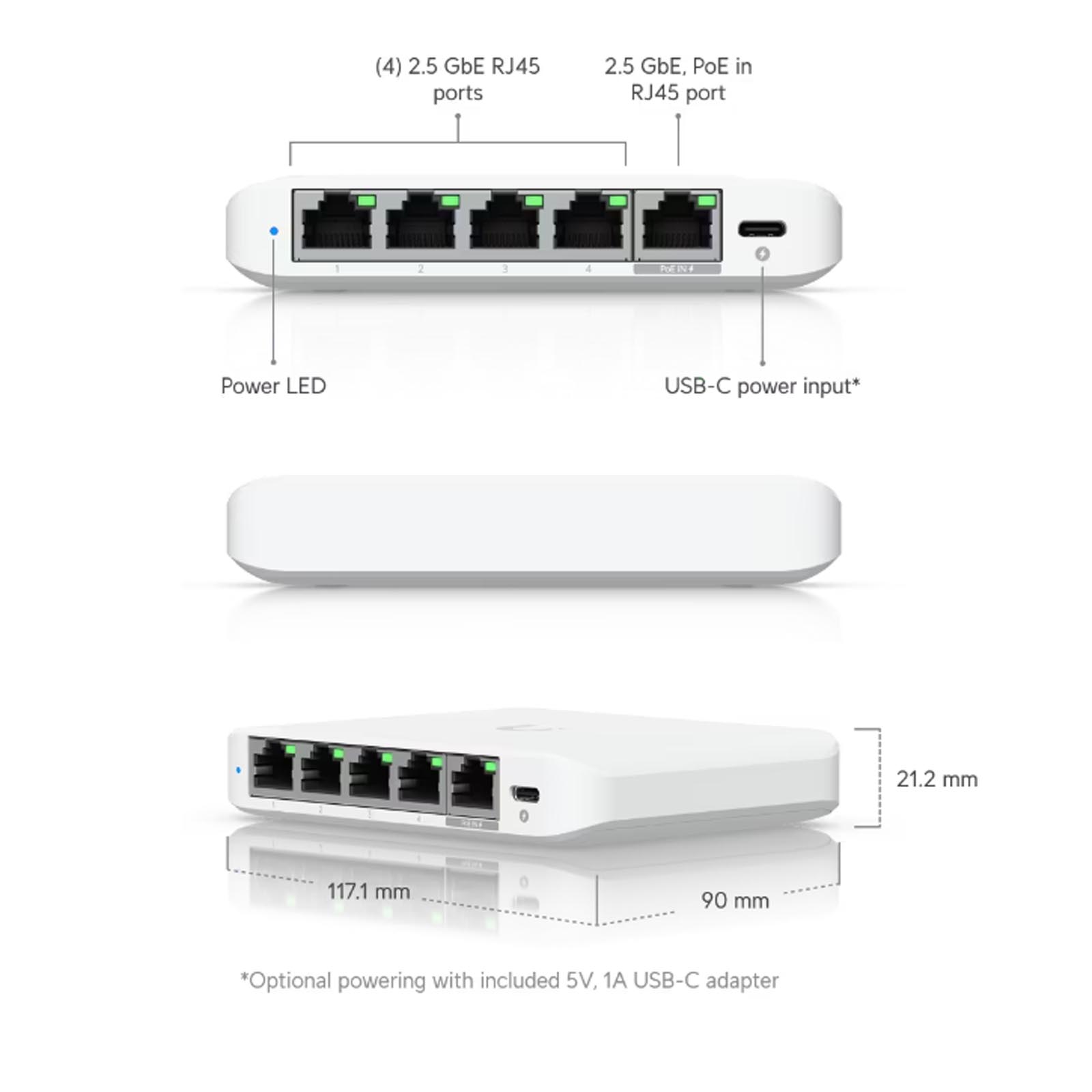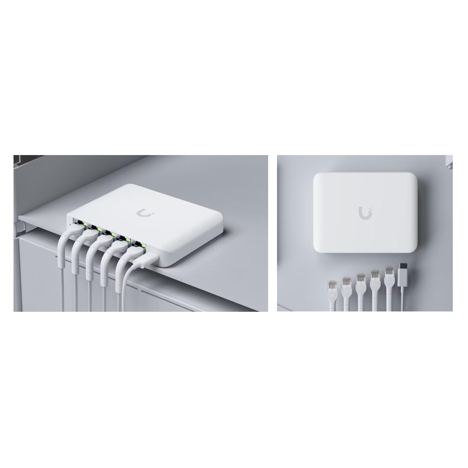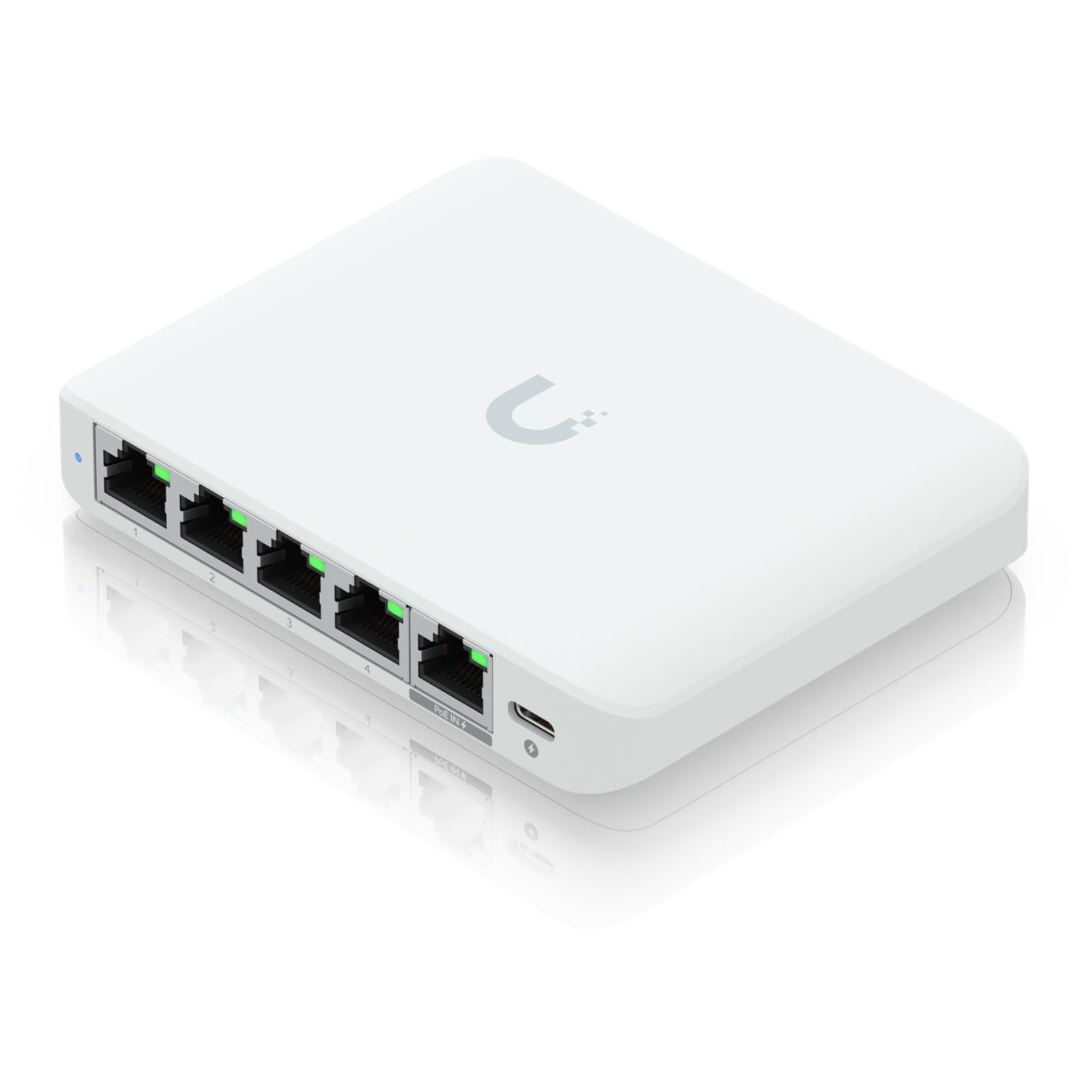 Ubiquiti UniFi Switch Flex Mini 2.5G (USW-Flex-2.5G-5) to zarządzalny gigabitowy switch wyposażony w 5x 2.5G gigabitowych portów 1/2.5 Gb/s w tym jeden port PoE IN. Zasilany jest przez PoE 802.3af/at lub zasilacz 5 V, 1A USB-C. Ubiquiti Flex Mini 2.5G (USW-Flex-2.5G-5) to kompaktowy i wydajny 5-portowy przełącznik, który zapewnia szybkie możliwości sieciowe w każdym środowisku. Dzięki czterem portom 2,5G Gigabit Ethernet przełącznik ten zapewnia szybszą transmisję danych, co czyni go doskonałym wyborem dla nowoczesnych aplikacji sieciowych, które wymagają szybkiej i niezawodnej łączności. Port wejściowy PoE-in 2,5G Gigabit Ethernet umożliwia łatwe zasilanie przez Power over Ethernet, eliminując potrzebę stosowania dodatkowych zasilaczy lub gniazdek. Maksymalny pobór mocy USW Flex Mini 2.5G to 5 W (AC/DC) i 6,4 W (PoE). UniFi Switch Flex Mini 2.5G oferuje zdolność przekierowania do jednoczesnego przetwarzania ruchu na wszystkich portach z szybkością linii bez utraty pakietów. Aby zwiększyć wszechstronność, przełącznik może być również zasilany za pomocą dołączonego adaptera USB-C 5 V, 1 A, co ułatwia integrację z różnymi środowiskami. Ta elastyczność w zakresie opcji zasilania zapewnia, że Flex Mini można umieścić w różnych lokalizacjach, co czyni go wszechstronnym dodatkiem do sieci. Ubiquiti UniFi Switch Flex Mini 2.5G zaprojektowany został z myślą o płynnej wydajności, oferując całkowitą przepustowość 12,5 Gb/s bez blokowania i zdolność przełączania 25 Gb/s. Specyfikacje te zapewniają swobodny przepływ danych bez wąskich gardeł, nawet przy dużym obciążeniu. Szybkość przekazywania 18,6 miliona pakietów na sekundę (Mpps) pozwala przełącznikowi wydajnie obsługiwać duży ruch, dzięki czemu nadaje się do wymagających aplikacji, takich jak strumieniowanie wideo, gry online i przesyłanie dużych plików. Dodatkowo, obsługa funkcji przełączania warstwy 2 zwiększa wydajność i stabilność sieci, w tym Spanning Tree Protocol (STP), Rapid Spanning Tree Protocol (RSTP), izolacja portów i kontrola burzy, które pomagają efektywnie zarządzać i optymalizować ruch sieciowy. USW-Flex-2.5G-5 stawia na wygodę użytkownika, oferując interfejs zarządzania Ethernet In-Band, który upraszcza zarówno konfigurację, jak i zadania konfiguracyjne. Funkcjonalność ta pozwala użytkownikom zarządzać przełącznikiem bezpośrednio przez istniejącą sieć bez potrzeby korzystania z dodatkowego oprogramowania lub sprzętu. Wymagania aplikacji określają kompatybilność z UniFi Network w wersji 8.4.62 i nowszej, zapewniając użytkownikom możliwość korzystania z najnowszych funkcji i ulepszeń. Niezależnie od tego, czy jest używany w domowym biurze, małej firmie czy przedsiębiorstwie, Ubiquiti Flex Mini 2.5G zapewnia niezawodne i wydajne rozwiązanie sieciowe dostosowane do wymagań dzisiejszego cyfrowego krajobrazu. Switch Ubiquiti Flex Mini 2.5G może być zarządzany i konfigurowany przez kontroler UniFi lub aplikację mobilną UniFi. Przełącznik oferuje podstawowe protokoły i funkcje przełączania warstwy 2. Kontroler UniFi i aplikacja mobilna pozwalają administratorom konfigurować i monitorować praktycznie wszystkie funkcje przełączników za pomocą graficznego interfejsu użytkownika z dowolnego miejsca.