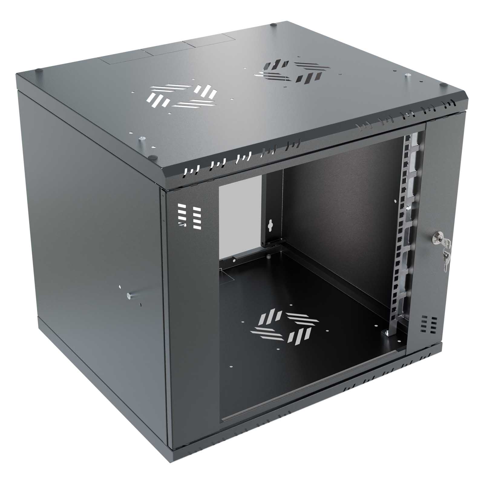 StalFlex S-RC19-9U-450GB Szafa wisząca Standard 19" 9U, 450mm, drzwi szklane, czarna. Szafa RACK serii Standard to idealne rozwiązanie podczas renowacji lub wymiany infrastruktury, a także dla każdego kto samodzielnie chce podjąć się stworzenia własnej serwerowni. Szafa Standard jest dostępna w różnych wariantach: 10 i 19 cali, o wysokości 4U, 6U, 9U, 12U, z głębokością 350mm, 400mm, 450mm lub 600mm, w kolorach czarnym i szarym. Przemyślana konstrukcja