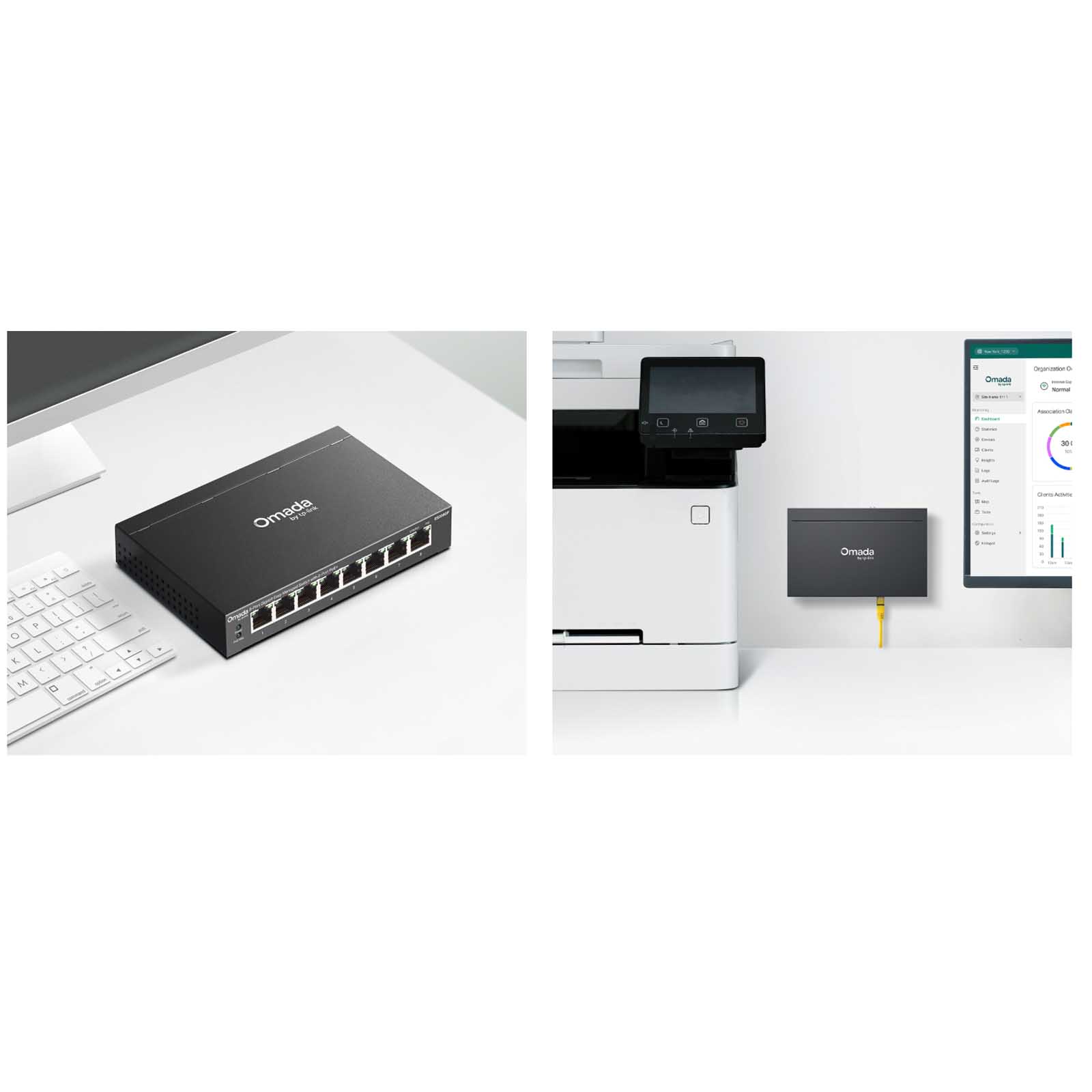 TP-Link ES208GP to zarządzalny przełącznik Omada Easy Managed, wyposażony w 8x portów Gigabit Ethernet 10/100/1000 Mb/s PoE+ zgodnych z 802.3at/af. Wszystkie porty obsługują automatyczną negocjację szybkości połączeń i automatyczne krosowanie Auto MDI/MDIX. Wydajnośc przełączania wynosi 16 Gb/s. Łączna moc zasilania wynosi do 64W, do 30W zasilania na każdym porcie PoE.