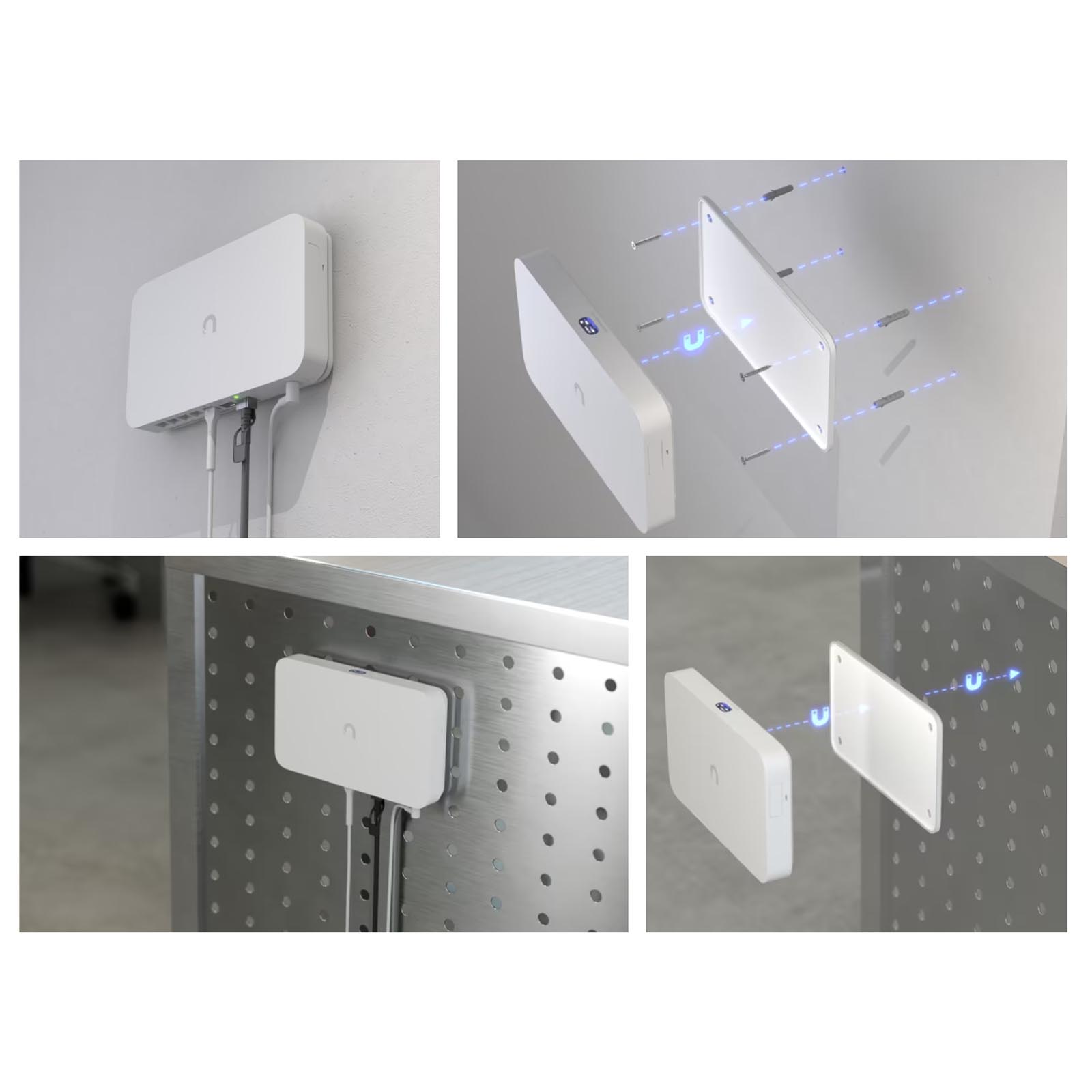 Ubiquiti Floating Mount (UACC-FM-23cm) to smukły, magnetyczny uchwyt ścienny do UniFi Cloud Gateway Fiber (UCG-Fiber) oraz UniFi Gateway Fiber (UXG-Fiber) Magnetyczny uchwyt UACC-FM-23cm wykonany jest z poliwęglanu i silikonowej gumy.