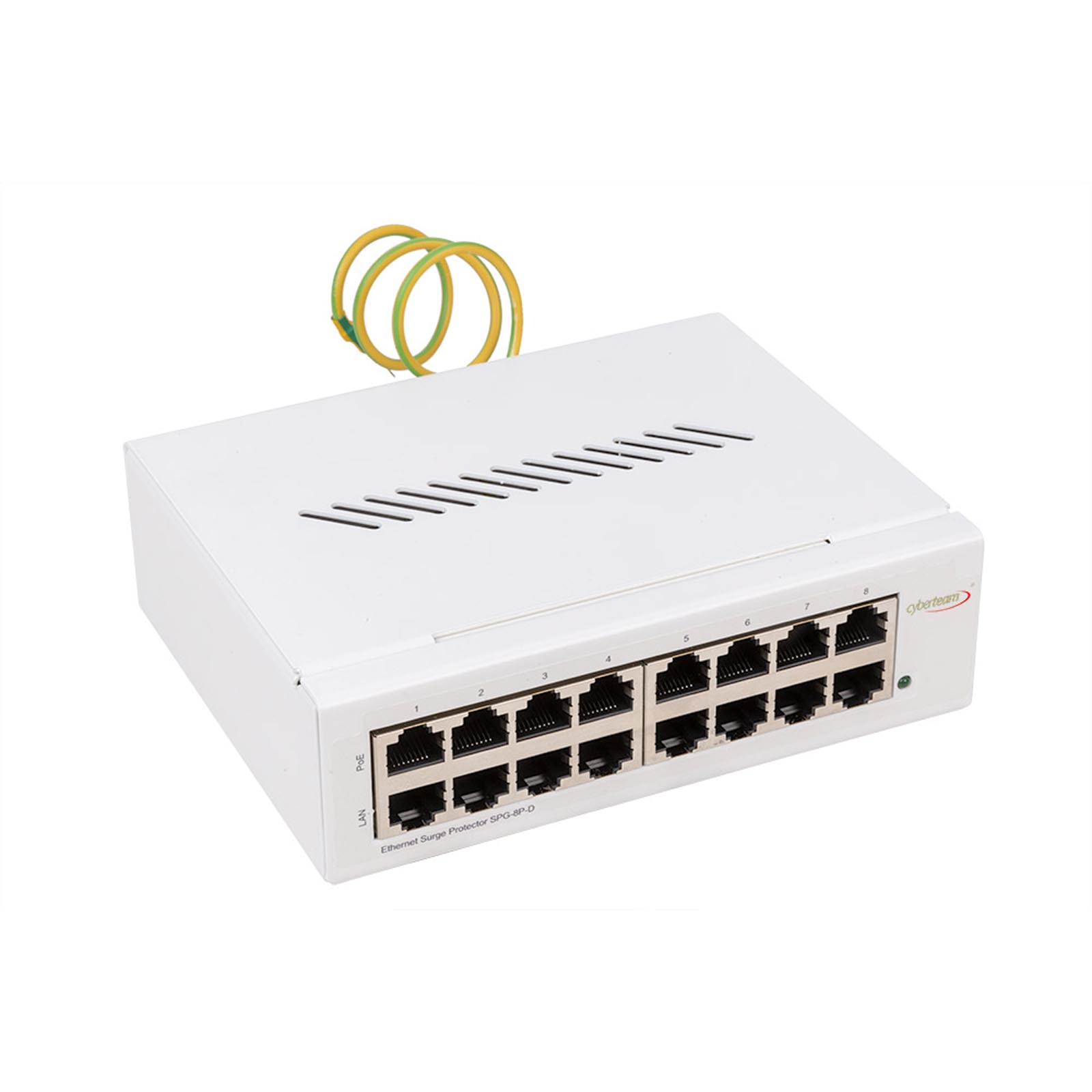 Ethernet Surge Protector SPG-8P-D to urządzenie, które skutecznie zabezpiecza sieć Ethernet przed przepięciami powstałymi na skutek indukowania ładunków elektrycznych o wysokim napięciu. Ładunki powstające podczas wyładowań atmosferycznych niszczą porty Ethernet w urządzeniach sieciowych. Mogą też powodować zniszczenie całego urządzenia, często dość drogiego. Gwarancja nakładana przez producenta nie obejmuje tego typu uszkodzeń i muszą być one naprawione na koszt właściciela. NetProtector zbiera ładunki indukowane w sieci i bezpiecznie odprowadza je do uziemienia, co skutecznie zapobiega uszkodzeniom powstałym na skutek przepięć.