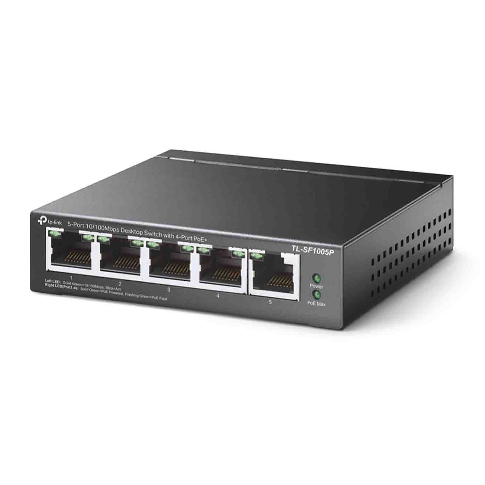 TP-Link TL-SF1005P to 5 portowy przełącznik PoE+ typu desktop, zapewniający płynną transmisję sieciową. Umożliwia nawiązywanie połączeń z prędkością 10 i 100Mb/s. Switch TL-SF1005P wyposażony został w 5 portów RJ45 Fast Ethernet wspierających automatyczną negocjację szybkości połączeń. 4 z nich obsługują funkcję Power over Ethernet (PoE+). Przełącznik automatycznie wykrywa urządzenia PD działające w standardzie IEEE 802.3af/at i zaopatruje je w zasilanie. Zgodność ze standardem 802.3af/at PoE+ zapewnia możliwość oferowania do 30 W mocy na każdym porcie PoE. 67W łącznej mocy zasilania PoE* przełącznika wyposażonego w 4 porty PoE+, to rozwiązanie idealne m.in. dla systemów monitoringu, biur, akademików i małych firm. Urządzenie jest w pełni zgodne z kamerami IP, punktami dostępowymi, telefonami IP, komputerami, drukarkami, itd. W trybie Extend, zasięg transmisji PoE sięga nawet 250m, dzięki czemu przełącznik jest doskonałym rozwiązaniem w przypadku rozmieszczania kamer IP na dużym obszarze. Prędkość na portach w trybie extend spada do 10Mb/s. Rzeczywisty dystans transmisji może różnić się od podanej wartości, w zależności od jakości używanych przewodów i zużycia energii podłączonych urządzeń. Możliwość nadania wyższych priorytetów portom 1–2 za pomocą trybu Priority uruchamianego jednym kliknięciem, gwarantuje wysoką jakość działania aplikacji wrażliwych na opóźnienia, takich jak nagrania wideo. Gdy całkowity pobór mocy przekracza 67W, funkcja inteligentnego zarządzania zużyciem energii wyłącza zasilanie portu o najniższym priorytecie, aby zapewnić zasilanie portów o wyższych priorytetach i tym samym chronić urządzenie przed przeciążeniem. Funkcja ta umożliwia także automatyczne wykrywanie wymaganej przez dane urządzenie mocy PoE i chroni urządzenia nieobsługujące PoE przed uszkodzeniem. Ochronę dla wrażliwych komponentów przełącznika stanowi wytrzymała obudowa, wykonana z metalu wysokiej jakości. Tak solidne zabezpieczenie gwarantuje wieloletnią i stabilną pracę urządzenia. TL-SF1005P to produkt niezawodny, co potwierdzają liczne testy bazujące na rygorystycznych standardach. Przełącznik TL-SF1005P jest prosty w instalacji i obsłudze. Nie wymagana konfiguracja ani montażu. Dzięki niezawodności i zapewnieniu wysokiej jakości transmisji, 5 portowy przełącznik PoE TL-SF1005P 10/100M typu desktop stanowi idealne rozwiązanie do rozbudowy domowej lub biurowej sieci. Najważniejsze cechy: