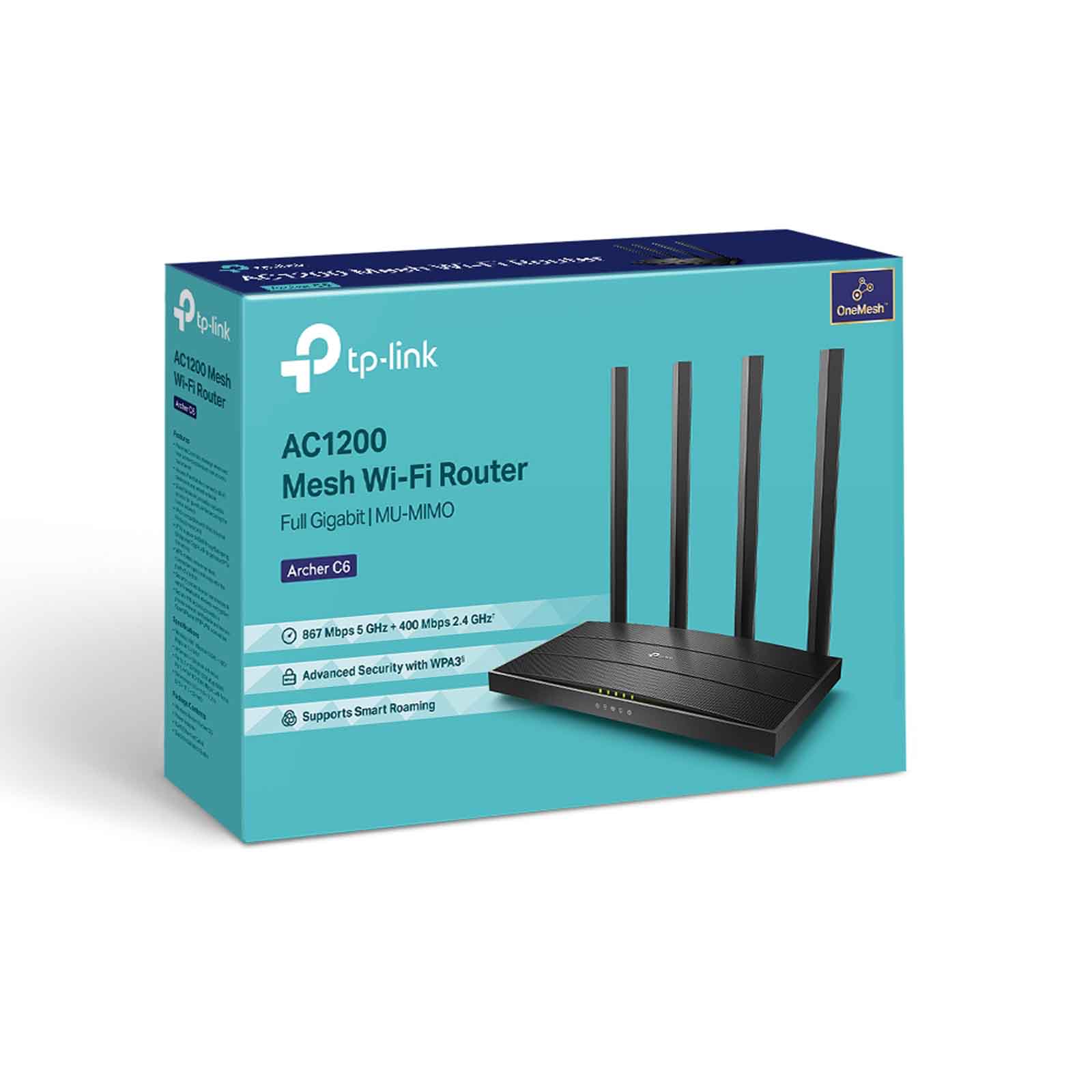 TP-Link Archer C6 to dwupasmowy, bezprzewodowy i gigabitowy router, który obsługuje połączenia w standardzie 802.11ac. Router korzysta w obu pasmach z technologii 2x2 MU-MIMO, dzięki jednoczesnej transmisji o prędkości 867Mb/s w wolnym od zakłóceń paśmie 5GHz oraz transmisji o prędkości 300Mb/s w tradycyjnym paśmie 2,4GHz użytkownicy dostają do dyspozycji 1200Mb/s maksymalnej łącznej przepustowości dla strumieniowych transmisji wideo w jakości HD, gier online i innych wymagających zastosowań biurowych lub domowych. Technologia MU-MIMO to większa prędkość, przepustowość i wydajność urządzenia. Pozwala ona na jednoczesną komunikację z dwoma urządzeniami. Urządzenie wyposażone jest w 4 anteny zewnętrzne (po dwie na pasmo 2,4 i 5 GHz), jedną antenę wewnętrzną oraz 5 gigabitowych portów Ethernet (4x LAN, 1x WAN). Archer C6 może pracować również jako punkt dostępu. Dzięki trybom pracy jako AP lub Bridge może również służyć do rozbudowy sieci. Najnowszy protokół zabezpieczeń sieci Wi-Fi, WPA3, daje nowe możliwości w zwiększaniu bezpieczeństwa cybernetycznego prywatnych sieci. Silniejsze szyfrowanie hasła sieci Wi-Fi i zwiększona ochrona przed atakami typu Brute Force gwarantują bezpieczeństwo domowej sieci Wi-Fi. Aby skonfigurować router według własnych potrzeb wystarczy tylko kilka minut. Jest to zasługa intuicyjnego interfejsu oraz łatwej w obsłudze aplikacji Tether. Aplikacja to najszybszy sposób na uzyskanie dostępu do urządzenia i zarządzanie nim za pomocą smartfona.