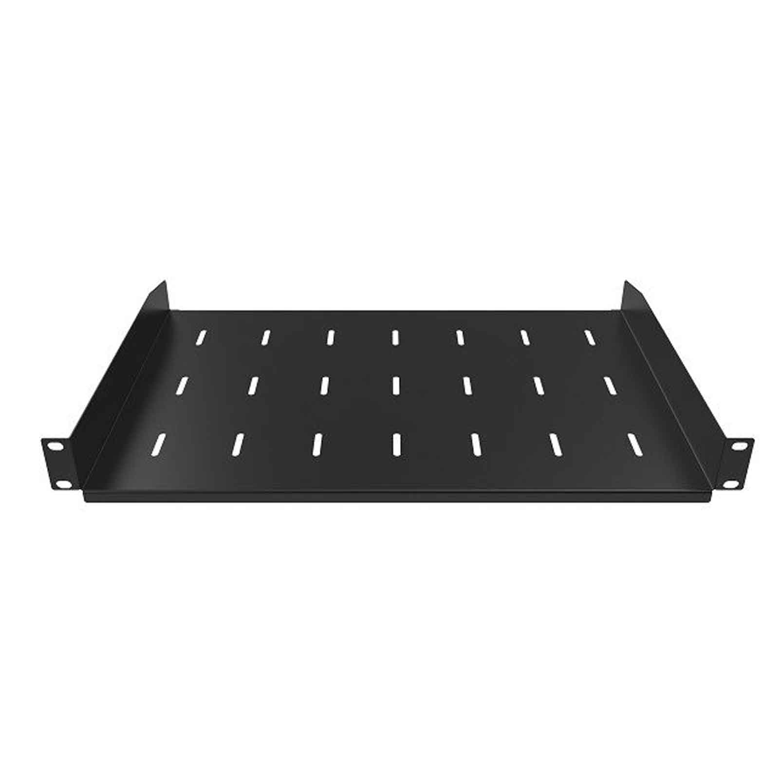 Półka o głębokości 300 mm przeznaczona do montażu w szafach RACK 19". Pozwala na umieszczanie w szafie urządzeń niezgodnych ze standardem 19" lub nieposiadających dedykowanych uchwytów montażowych. Mocowanie do przednich wsporników rackowych zapewnia stabilność konstrukcji i umożliwia przenoszenie większych obciążeń. Wysokiej jakości stal z jakiej wykonano półkę zapewnia wytrzymałość i stabilność jej konstrukcji. Perforowane dno zapewnia lepsze odprowadzanie ciepła od postawionych urządzeń, a także może służyć do dodatkowego zabezpieczenia urządzeń za pomocą opasek kablowych. Najważniejsze cechy: