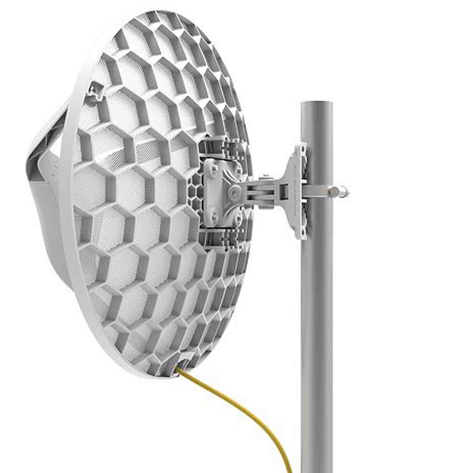 MikroTik RouterBoard LHG 60G (RBLHGG-60ad) to nowy bezprzewodowy model z serii LHG, pracujący w paśmie 60 GHz, zgodny ze standardem IEEE 802.11ad wykorzystywany jako urządzenie klienckie lub w połączeniach punkt-punkt. Służy do połączeń z 60GHz punktem dostępowym na długich dystansach, tworząc wydajne połączenia wielkopunktowe. Przykładowym access pointem, do którego mozna podłączyć maksymalnie 8 urządzeń LHG 60G jest MikroTik wAP 60G AP lub MikroTik wAP 60Gx3 AP - razem tworzą sieć punkt-wielopunkt w paśmie 60 GHz o przepustowości do 1Gb/s. Efektywna odległość dla łączy punkt-punkt między dwoma jednostkami LHG 60G wynosi do 1500 metrów, natomiast dla łączy punkt-wielopunkt - do 800 metrów. Jest to najlepsza alternatywa dla połączeń bezprzewodowych, w których pasma 2,4GHz i 5GHz są zatłoczone i mocno zaszumione. Darmowe pasmo 60 GHz póki co jest wolne od zakłóceń i umożliwia stworzenie połączeń o dużej przepustowości. LHG 60G zostało wyposażone w gigabitowy port Ethernet do szybkich połączeń, procesor 4-rdzeniowy ARM Cortex A7 o taktowaniu 716 MHz oraz 256 Mb pamięci RAM. Dołączono antenę siatkową o średnicy 391 mm, taką samą jak w zwykłej wersji LHG. Zestaw zawiera zasilacz 24 V DC, 0.38 A, gigabit PoE injector oraz uchwyt montażowy LHG mount i aim tool. Urządzenie może być zasilane przez pasywne PoE.