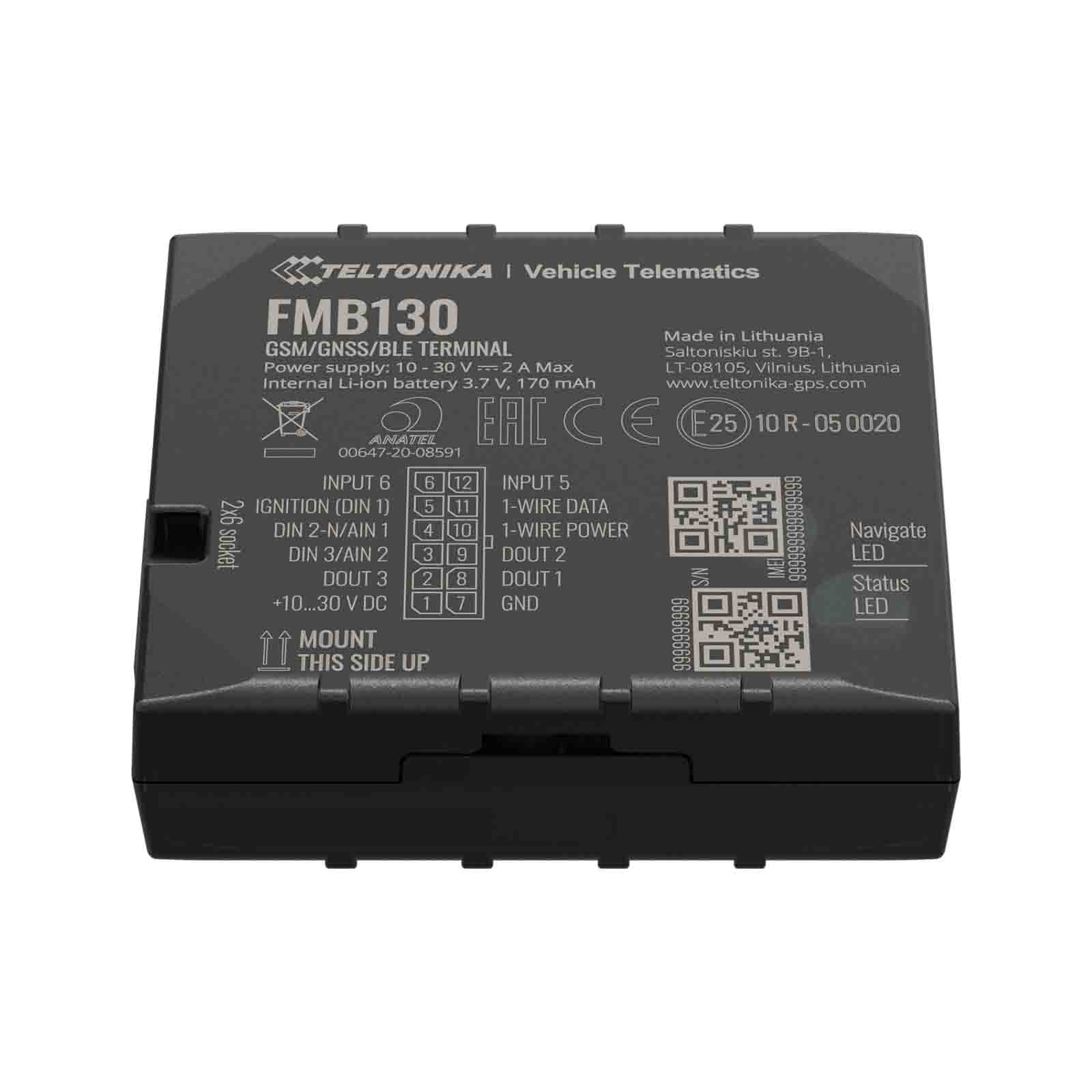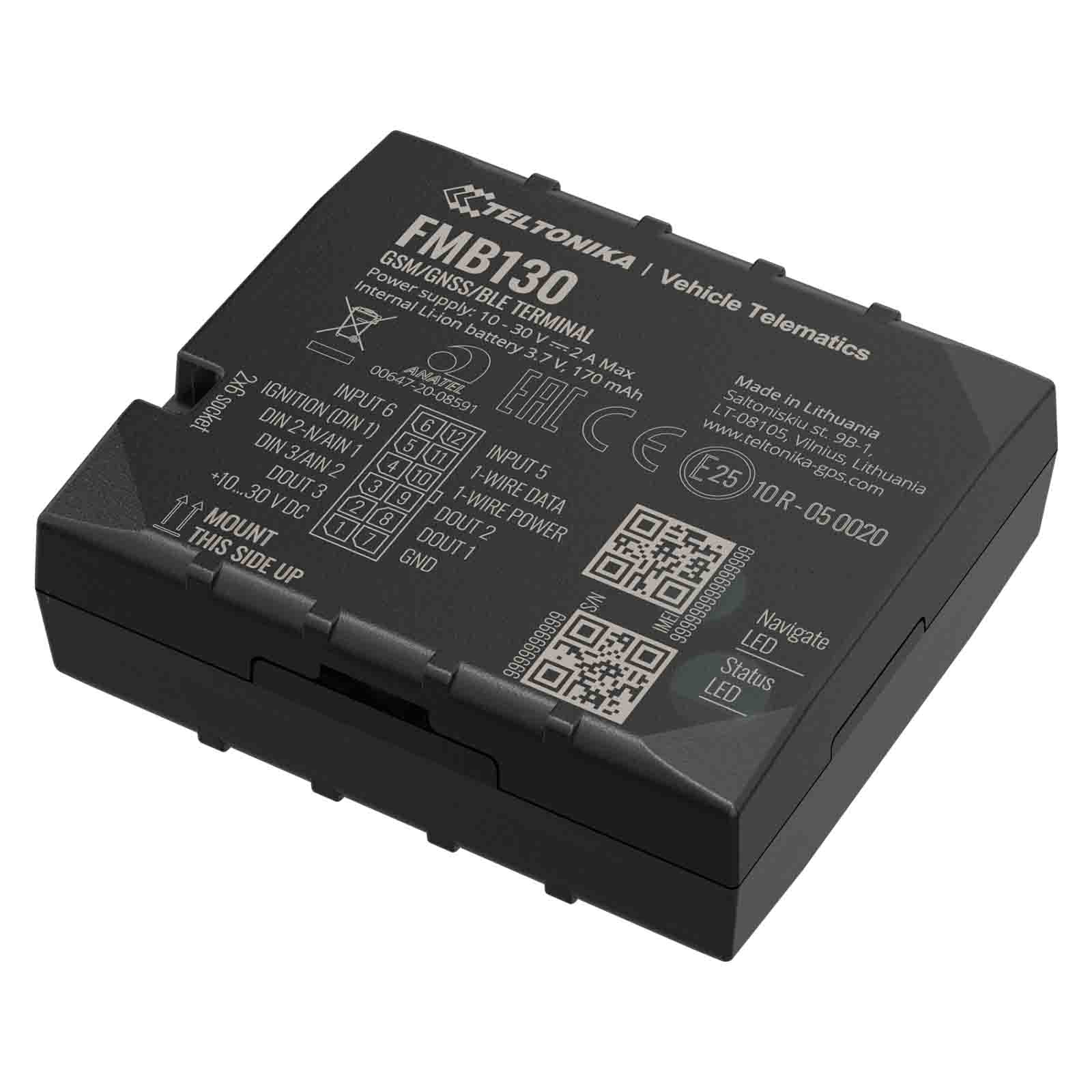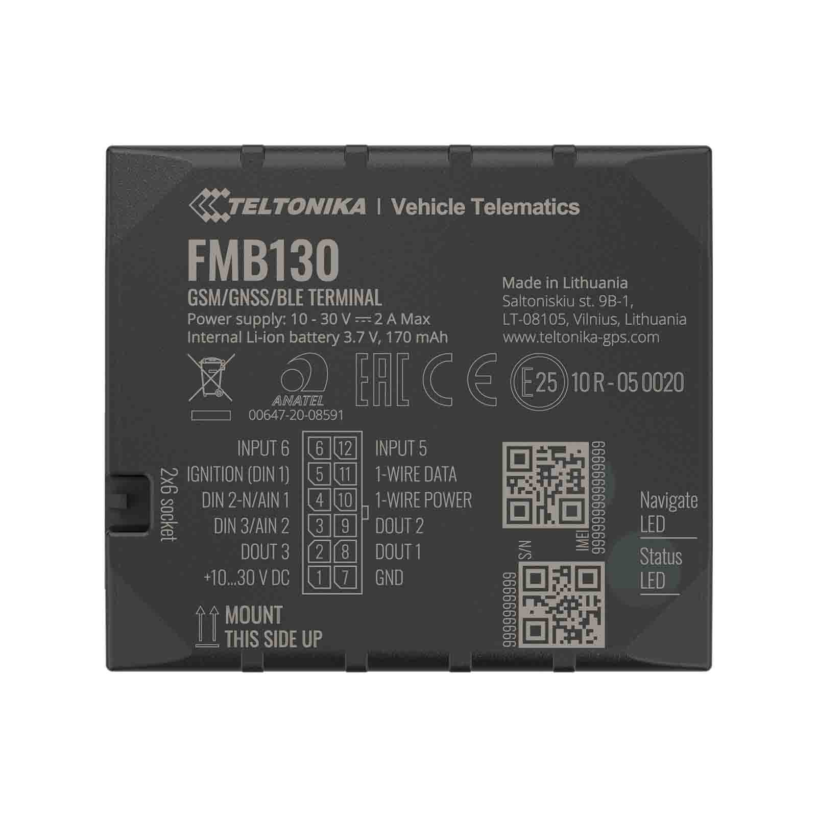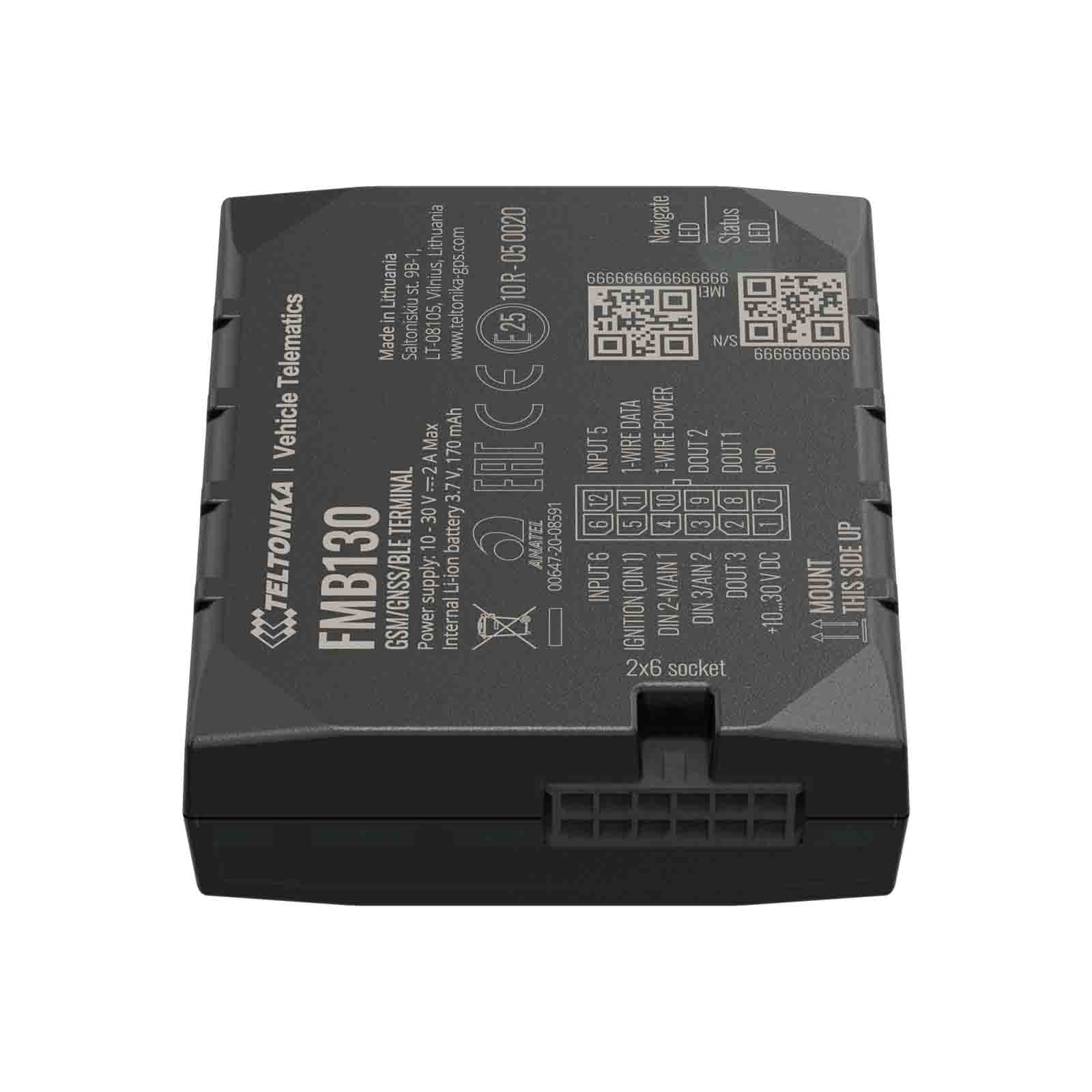Teltonika FMB130 to lokalizator GNSS / GSM / Bluetooth z wewnętrznymi antenami GNSS / GSM i wewnętrzną baterią. FMB130 to zaawansowany tracker z wewnętrznym GNSS, antenami GSM, konfigurowalnymi wejściami cyfrowymi, analogowymi, ujemnymi wejściami, wejściami impulsowymi, trzema wyjściami DOUT, łącznością Bluetooth i baterią zapasową.