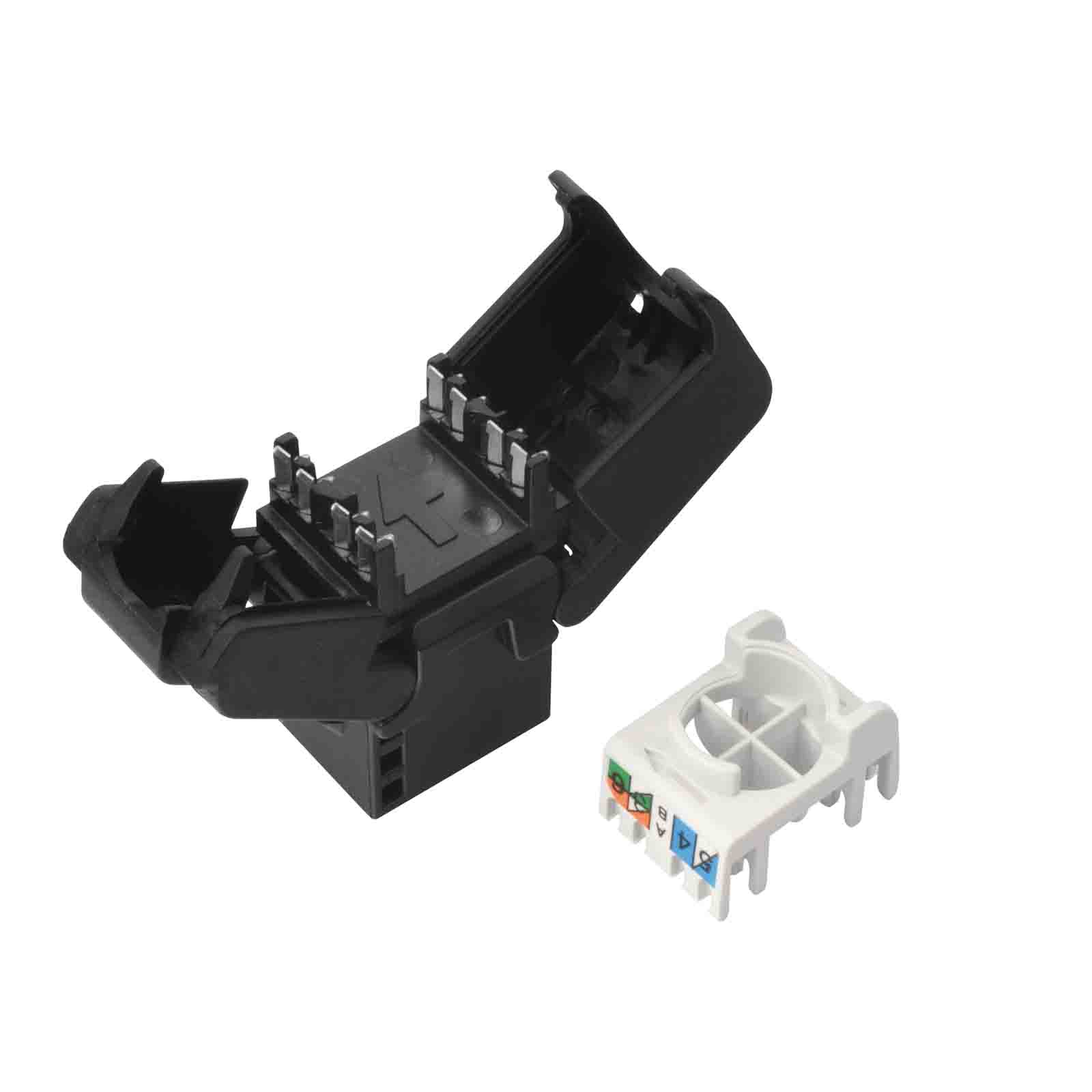Solarix SXKJ-5E-UTP-BK-SA to samozaciskowy keystone kat. 5e UTP RJ45. Samozaciskowy keystone charakteryzuje się łatwą instalacją bez używania narzędzi zaciskowych. Posiada parametry zgodne z międzynarodowymi standardami dotyczącymi okablowania strukturalnego ANSI/TIA 568, ISO/IEC 11801 a EN 50173 dla kategorii 5E i klasy przewodów Class D, włącznie z wszystkimi najnowszymi dodatkami. Keystone daje możliwość zmiany kąta wprowadzenia kabla w zakresie 180° i posiada kolorowe oznaczenia zgodnie ze standardami T568A lub T568B. Budowa keystona umożliwia podłączenie kabli typ drut o średnicy AWG 22-26. Wersja nieekranowana jest w kolorze czarnym, natomiast ekranowana posiada srebrną obudowę metalową. Kompaktowe wymiary zapewniają kompatybilność z modularnymi gniazdkami większości producentów (np. ABB, Schneider, Legrand, Moeller, Hager, Obzor itd). Najważniejsze cechy: