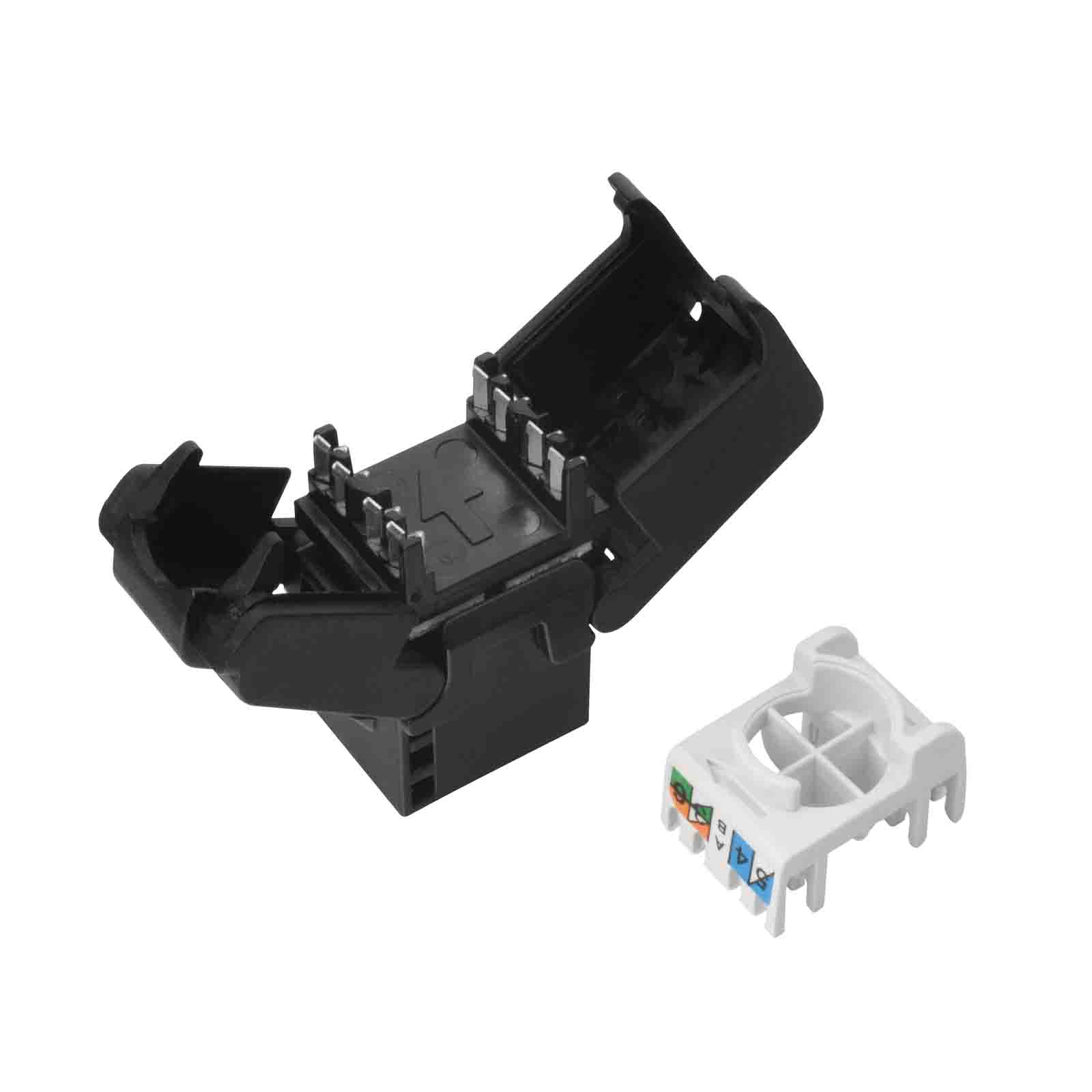 Solarix SXKJ-6-UTP-BK-SA to samozaciskowy keystone kat. 6 UTP RJ45. Samozaciskowy keystone charakteryzuje się łatwą instalacją bez używania narzędzi zaciskowych. Posiada parametry zgodne z międzynarodowymi standardami dotyczącymi okablowania strukturalnego ANSI/TIA 568, ISO/IEC 11801 a EN 50173 dla kategorii 6 i klasy przewodów Class E, włącznie z wszystkimi najnowszymi dodatkami. Keystone daje możliwość zmiany kąta wprowadzenia kabla w zakresie 180° i posiada kolorowe oznaczenia zgodnie ze standardami T568A lub T568B. Budowa keystona umożliwia podłączenie kabli typ drut o średnicy AWG 22-26. Wersja nieekranowana jest w kolorze czarnym, natomiast ekranowana posiada srebrną obudowę metalową. Kompaktowe wymiary zapewniają kompatybilność z modularnymi gniazdkami większości producentów (np. ABB, Schneider, Legrand, Moeller, Hager, Obzor itd). Najważniejsze cechy: