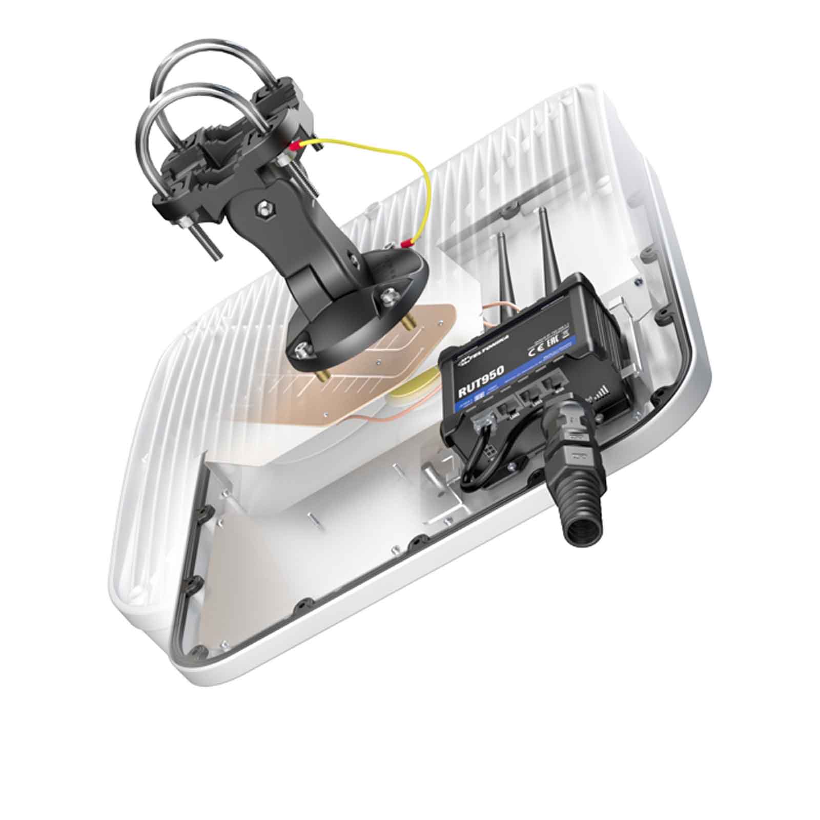 QuMax XR LTE (AXRL) dla Teltonika RUT200, RUT240, RUT241, RUT950, RUT951, RUT955, RUT956, RUTX09 i RUTX11 to zintegrowana zewnętrzna wielopasmowa antena kierunkowa eXtra Range LTE. QuMAX eXtra Range LTE oferuje najmocniejszą kierunkową antenę LTE spośród wszystkich anten QuWireless. Dedykowana jest do połączeń na duże odległości ze stacją bazową. Jest to pierwszy wybór do stałych instalacji w środowisku przemysłowym. Wewnątrz obudowy jest również miejsce na montaż wewnętrznych oryginalnych anten Teltonika GPS i Wi-Fi.