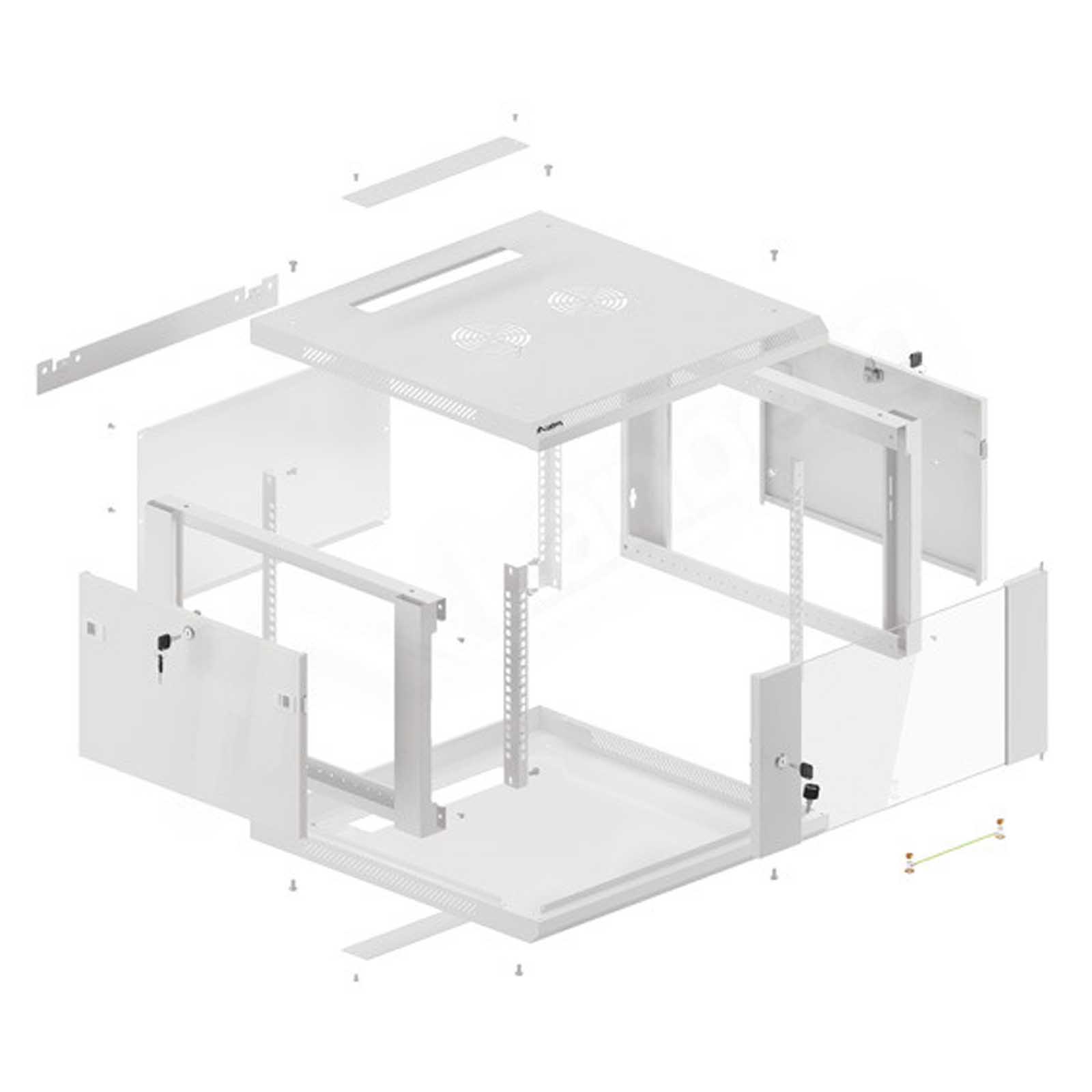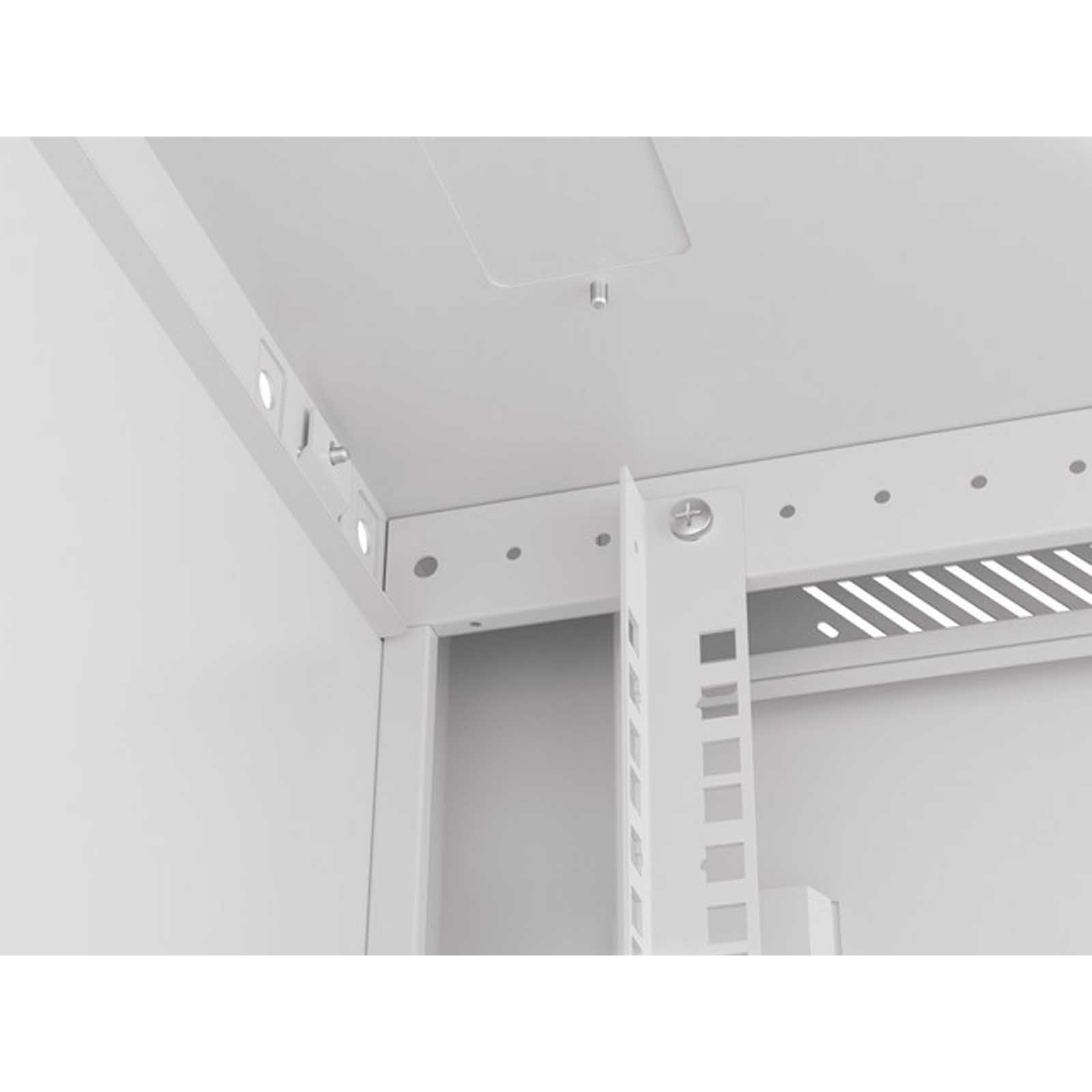 Szafa wykonana jest z wysokiej jakości stali walcowanej, a dzięki konstrukcji do samodzielnego montażu (flat pack) znajduje się w płaskim opakowaniu co ułatwia transport. Dodatkowo w przesyłce załączone są dodatkowe akcesoria do mocowania szyn nośnych, śruby M6 oraz zaślepki paneli wejściowych.