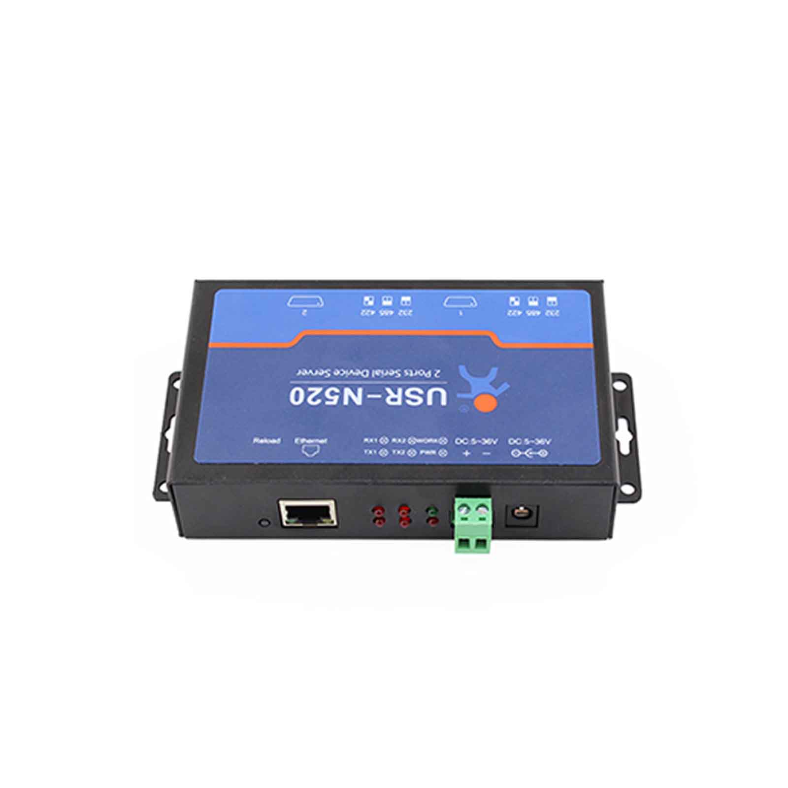 USR-N520 to przemysłowy media konwerter z dwoma portami RS232/RS485/RS422 na LAN w metalowej obudowie. Wybór rodzaju portu odbywa się poprzez odpowiednie ustawienie przełączników. Urządzenie zapewnia przeźroczystą transmisję danych. Oparty na procesorze Cortex-M4, obsługuje protokół Modbus RTU oraz TCP IP. Najważniejsze cechy: