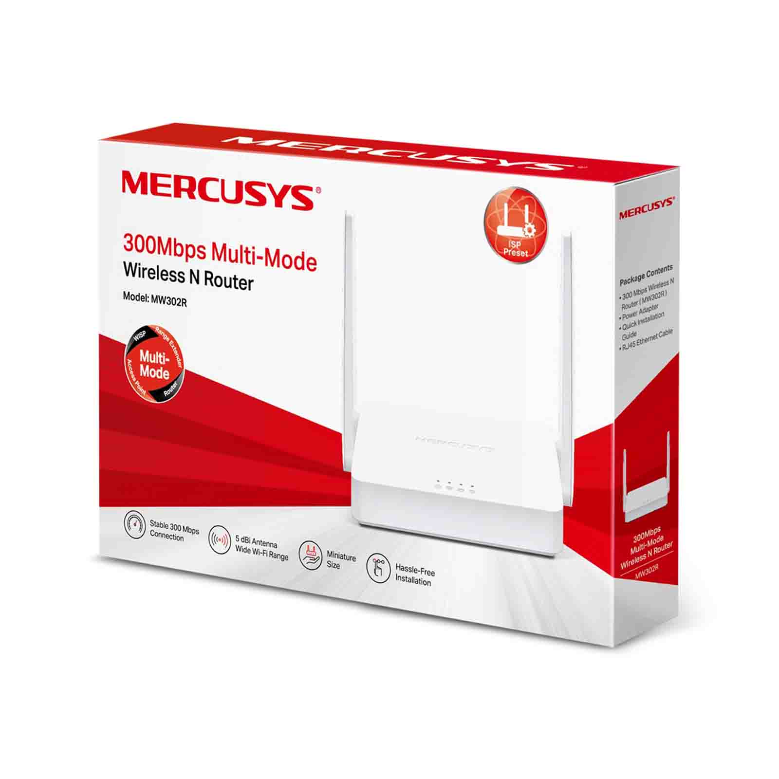 Mercusys MW302R to bezprzewodowy router pracujący w paśmie 2,4 GHz, wyposażony w 3 porty fast Ethernet (1 port WAN, 2 porty LAN). Posiada dwie zewnętrzne anteny dookólne o zysku 5 dBi każda, zapewniające duży zasięg sieci bezprzewodowej. Wyposażony jest w wydajny chipset Mediateka MT7628KN o maksymalnej mocy nadawczej 20 dBm. MW302R wspiera wiele trybów pracy: tryb routera (zapewnia dostęp do sieci bezprzewodowej dla wszystkich urządzeń Wi-Fi), tryb wzmacniacz sygnału (zwiększa zasięg sieci Wi-Fi), tryb punktu dostępowego (wzmacnia sieć przewodową, umożliwiając do niej dostęp bezprzewodowy), tryb WISP (umożliwia bezprzewodowe łączenie się z siecią ISP w miejscach, w których korzystanie z usługi połączeń przewodowych nie jest możliwe). Urządzenie wspiera protokoły IEEE 802.11 b/g/n. Dzięki temu maksymalna teoretyczna przepustowość wynosi 300 Mb/s. Router posiada wiele przydatnych funkcji, m.in. możliwość stworzenia dodatkowej sieci dla gości (guest network), stworzenie mostu WDS czy możliwość zdalnego zarządzania, a także obsługuje VLANy. Router posiada również szereg innych funkcji, jak: IPTV (funkcje IGMP Proxy/Snooping, Bridge i tagowanie VLAN pomagają w optymalizacji transmisji strumieniowej IPTV), Harmonogram Wi-Fi, Kontrola diod, Zaawansowane zabezpieczenia, Obsługa IPv6. Najważniejsze cechy: