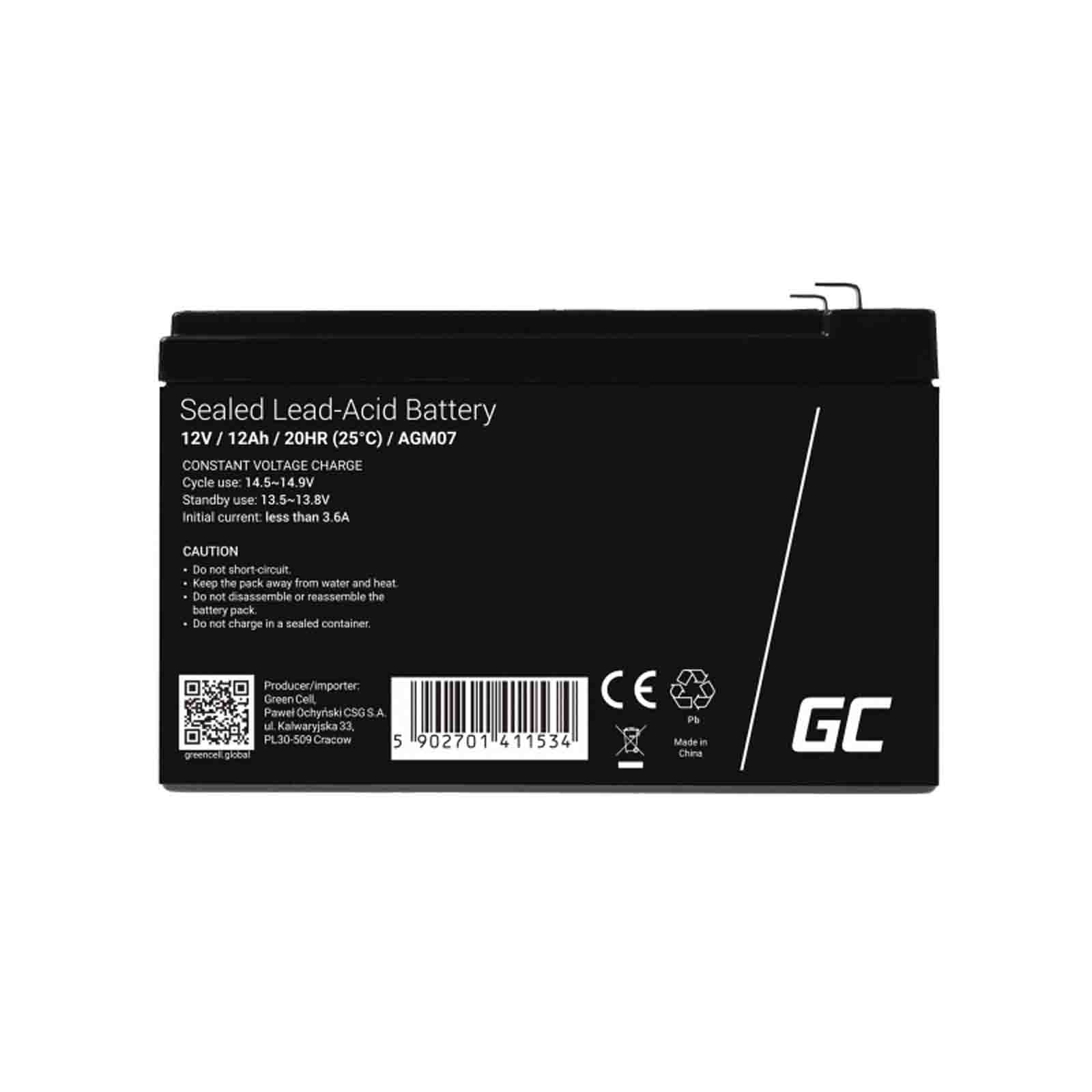 Akumulator Green Cell AGM 12V 12Ah to bezobsługowy akumulator do systemu alarmowego, kasy fiskalnej czy zabawek.