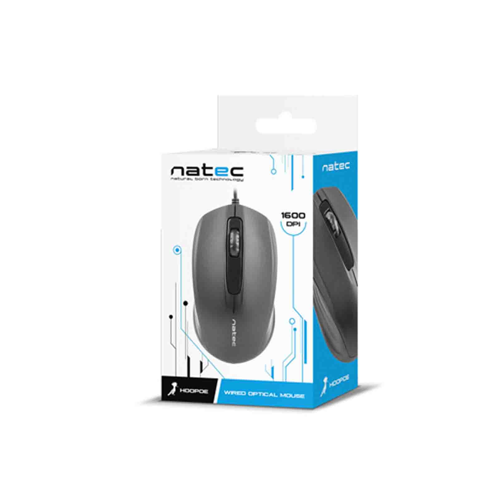 Natec Hoopoe to funkcjonalna, uniwersalna mysz przewodowa, której obsługa jest niezwykle prosta i intuicyjna. Jej ergonomiczny kształt dostosowany do obu rąk zapewnia wygodę i skutecznie zapobiega zmęczeniu nadgarstka. Dzięki symetrycznej konstrukcji obudowy, przeznaczona jest dla osób zarówno prawo- jak i leworęcznych. Dodatkowe żłobienia na bokach myszy pomagają dopasować wygodny dla użytkownika chwyt. Mysz Hoopoe wyposażono jest w sensor optyczny o rozdzielczości 1600 DPI, który jest doskonałym rozwiązaniem w przestrzeni biurowej. Dzięki temu mysz bez problemu sprawdzi się na każdym rodzaju powierzchni i zawsze bezbłędnie odwzoruje ruch użytkownika. Mysz posiada kabel o długości 1,8 metra zakończony wtyczką USB 2.0. Zapewnia to swobodę ruchów oraz nieograniczone możliwości pracy. Wystarczy podłączyć mysz do urządzenia, które obsługuje USB i korzystać ze sprzętu bez zbędnych konfiguracji, dzięki funkcji Plug&Play.
