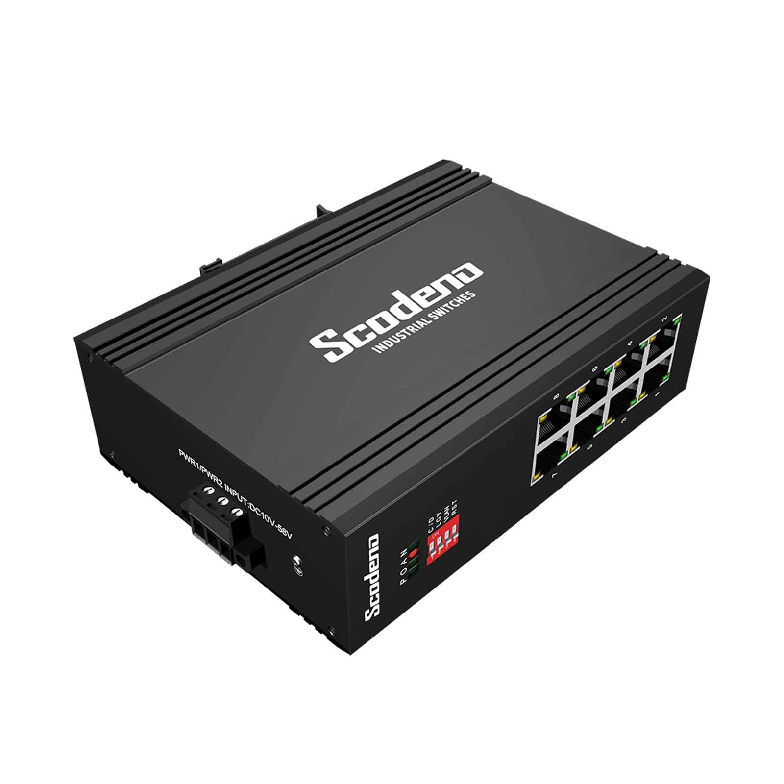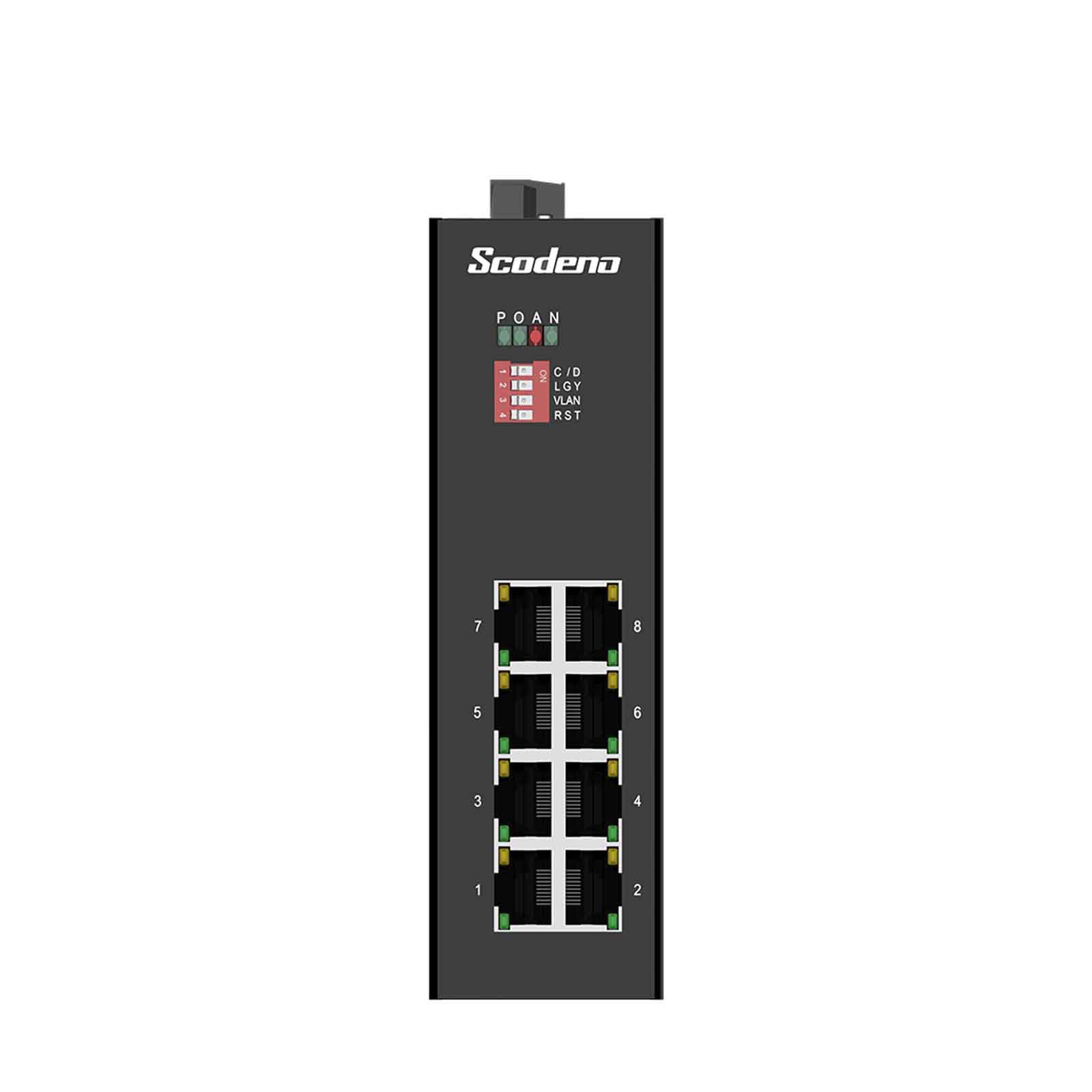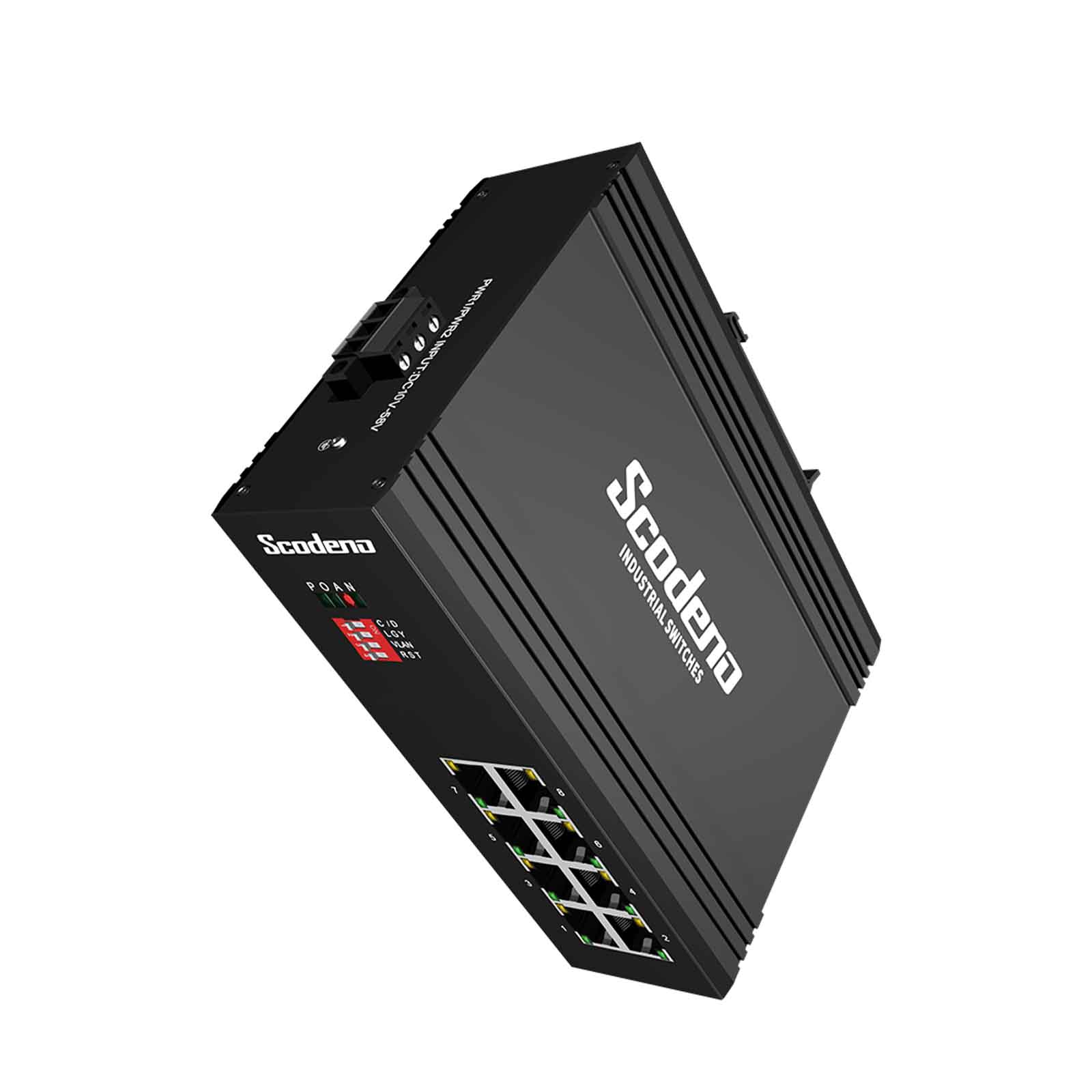 Przemysłowe przełączniki Ethernet marki Scodeno posiadają bezwentylatorową konstrukcję obwodu rozpraszania ciepła, szeroki zakres temperatur środowiska pracy oraz wysoki poziom ochrony (odporność na wstrząsy, pyłoszczelność itp). Switche zapewniają doskonałą jakość przemysłową z odpornością na wysokie i niskie temperatury, ochronę odgromową oraz zwiększoną niezawodność i bezpieczeństwo sieci przemysłowych.