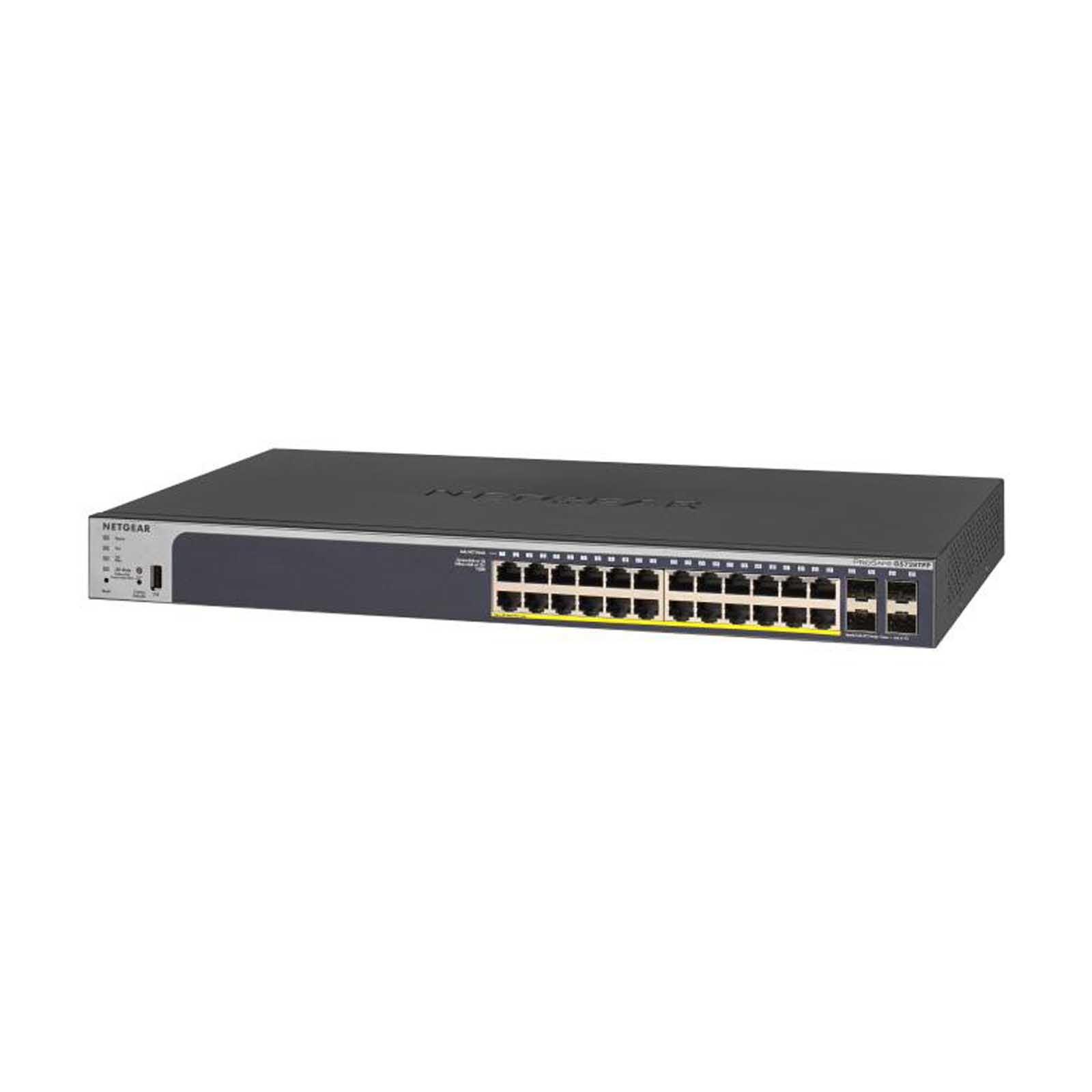 24-portowy inteligentny przełącznik PoE+ Gigabit Ethernet z opcjonalnym zarządzaniem zdalnym/chmurowym i 4x slotami SFP (380 W). W zestawie roczna subskrypcja NETGEAR Insight |