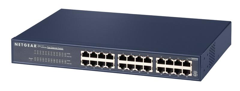 Niezarządzalny 24-portowy switch Fast Ethernet w metalowej obudowie, możliwość mocowania w szafie RACK |