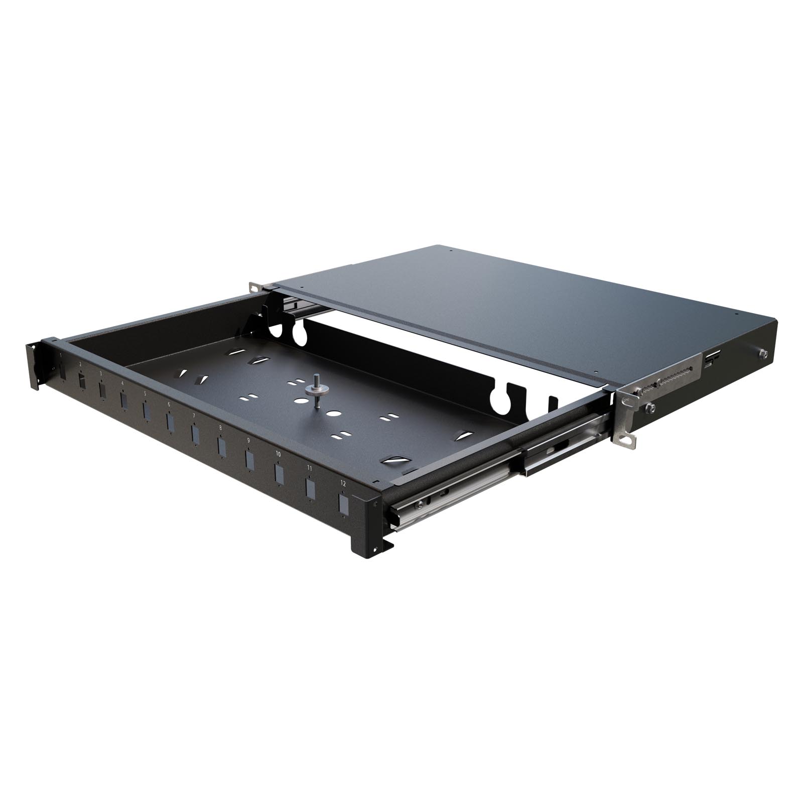 Przełącznica światłowodowa 19" 1U 12xSC Simplex (LC Duplex), szara, wysuwana |