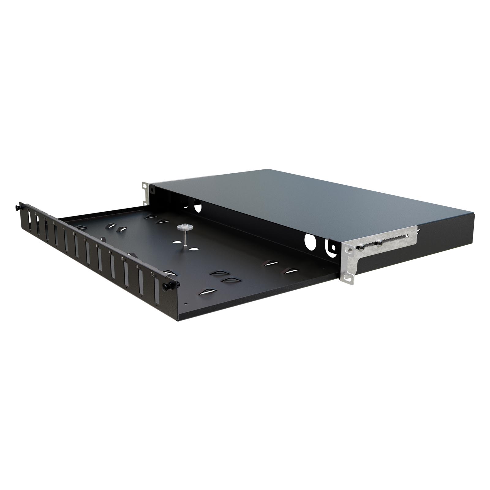 Przełącznica światłowodowa 19" 1U 12xSC Duplex, czarna, stała