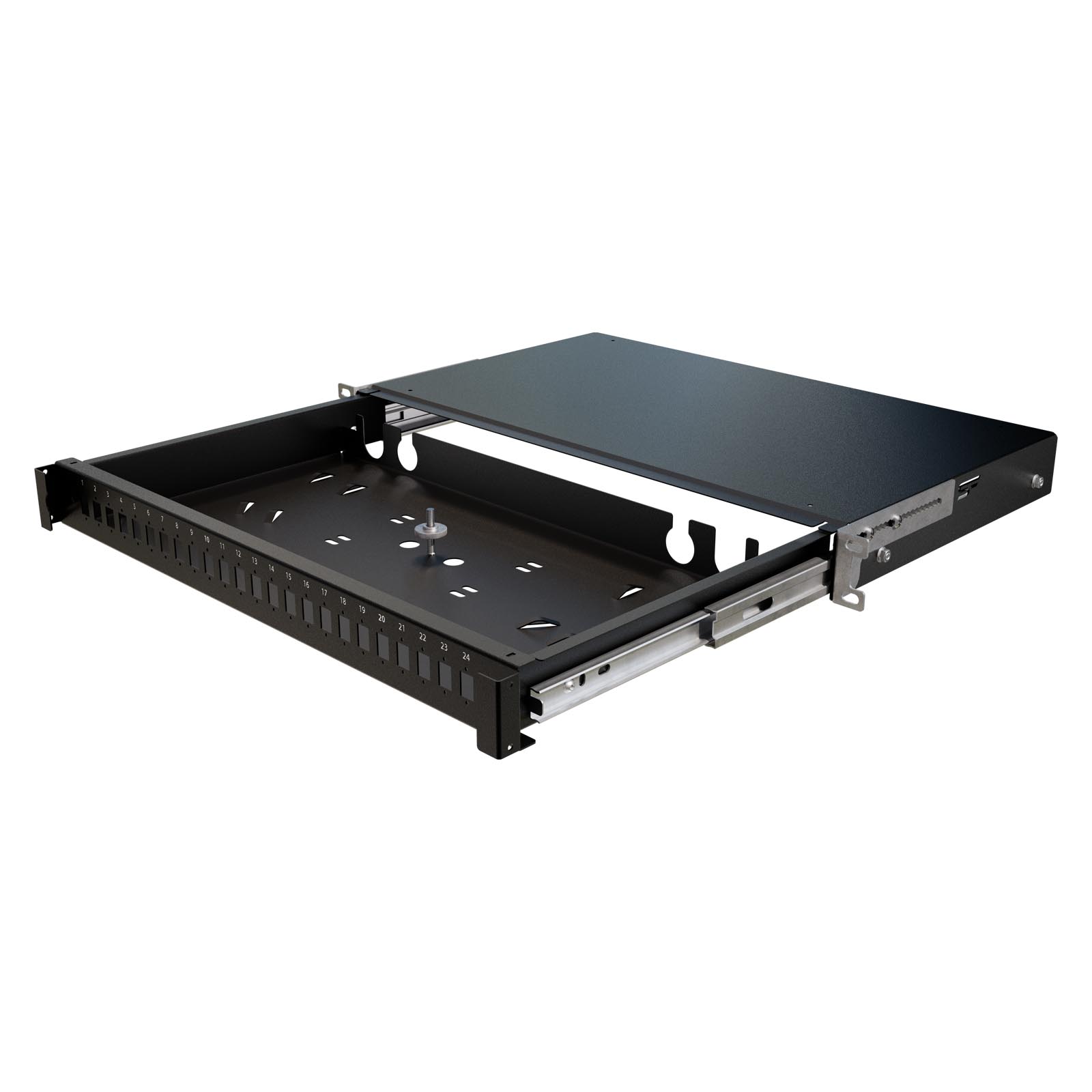 Przełącznica światłowodowa 19" 1U 24xSC Simplex (LC Duplex), szara, wysuwana